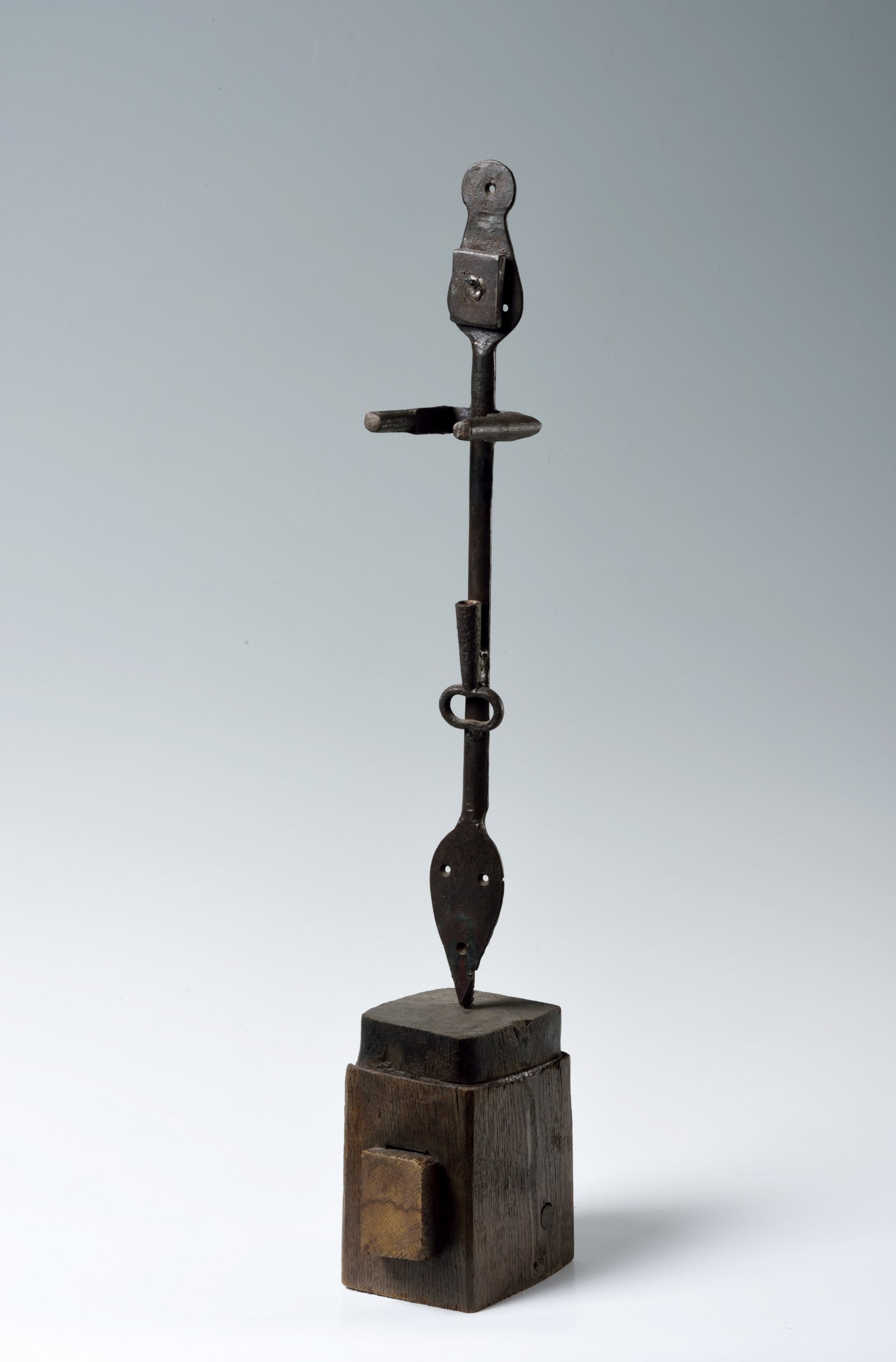Železná plastika stojící ženy na masívním podstavci z neopracovaného dřeva. Dílo pochází z nepočetného souboru autorových kovových plastik z konce 60. let minulého století. K dispozici výstavní katalog.
