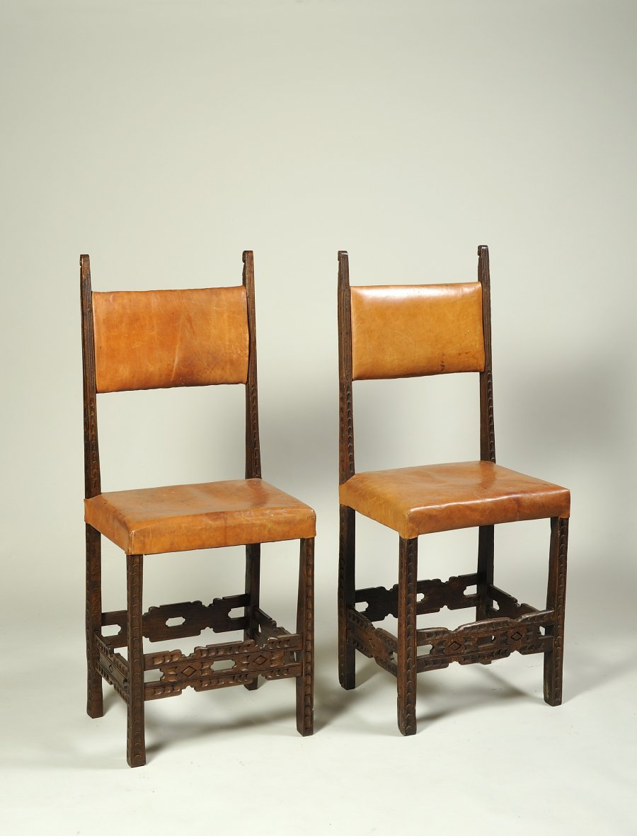 Ořechové dřevo, novější kožený potah.
