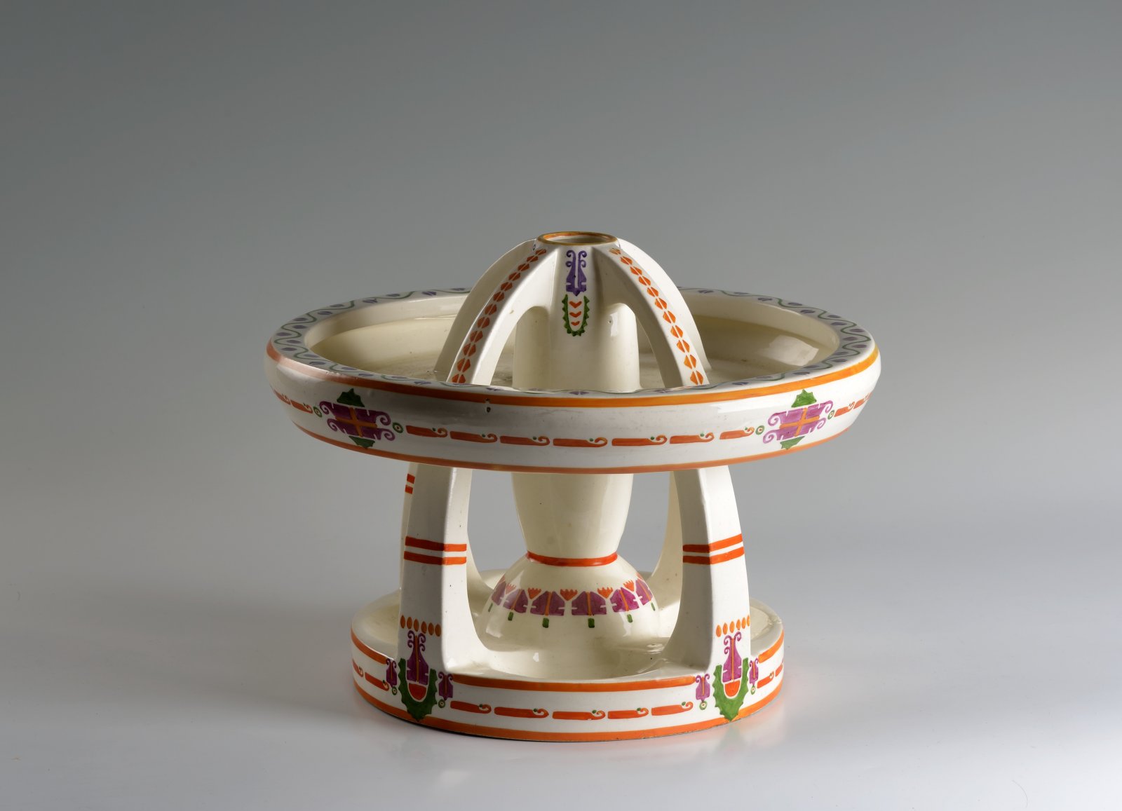 Nástolec s mísou a vázou, geometrický dekor. Forma patrně dle návrhu Rudolfa Stockara. Výroba firma Graniton. Velmi dobrý stav.