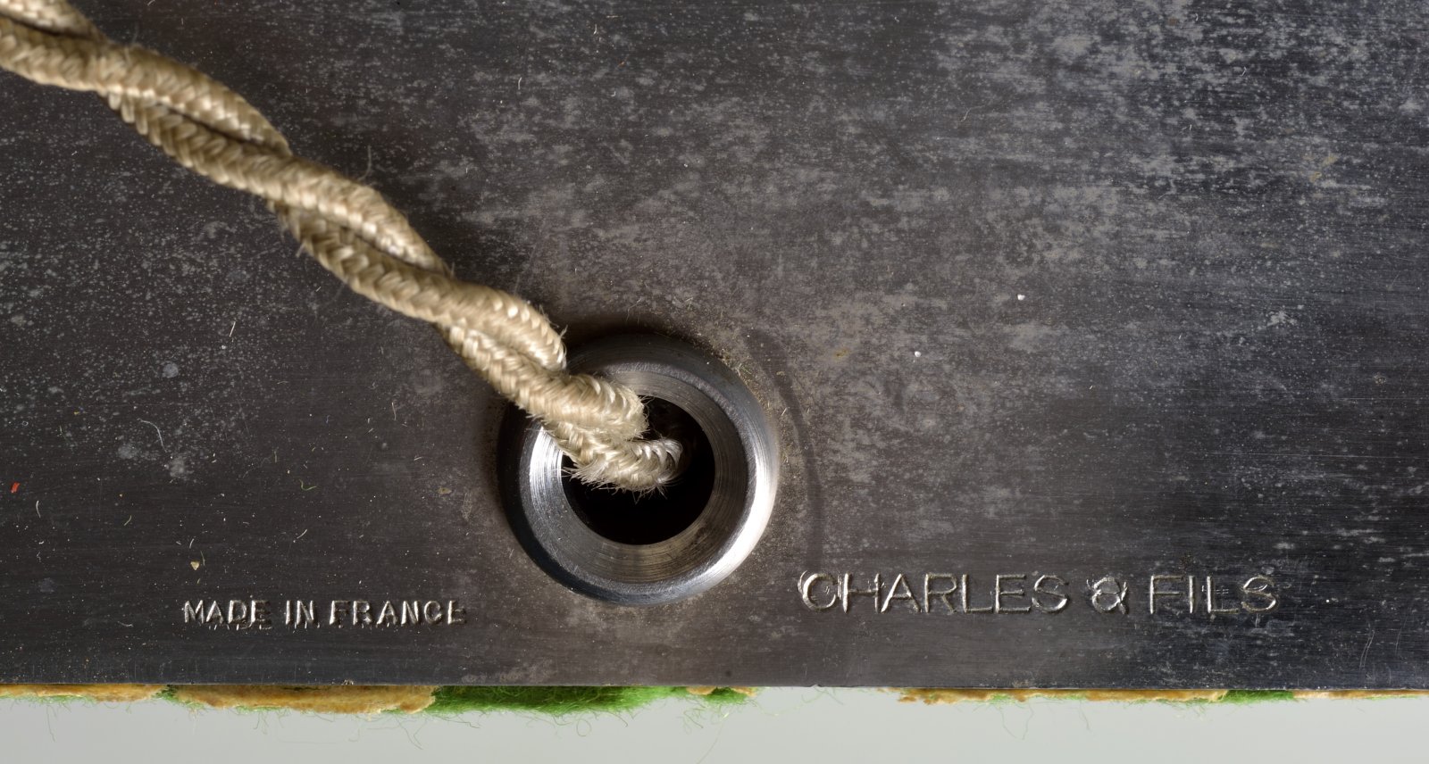 Chromovaný bronz. Značeno Charles & Fils, made in France. Publikováno in: Vente du Centenaire CHARLES Paris " Une histoire du Luminaire á travers le XXeme siécle".