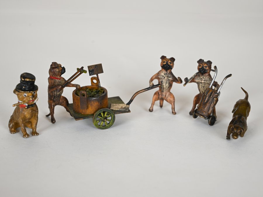 Sběratelská sada vídeňských bronzových figurek s motivy zvířátek.