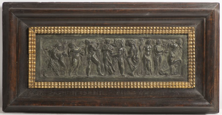 Bronzový reliéf s námětem bakchanálií s rámem holandského typu.