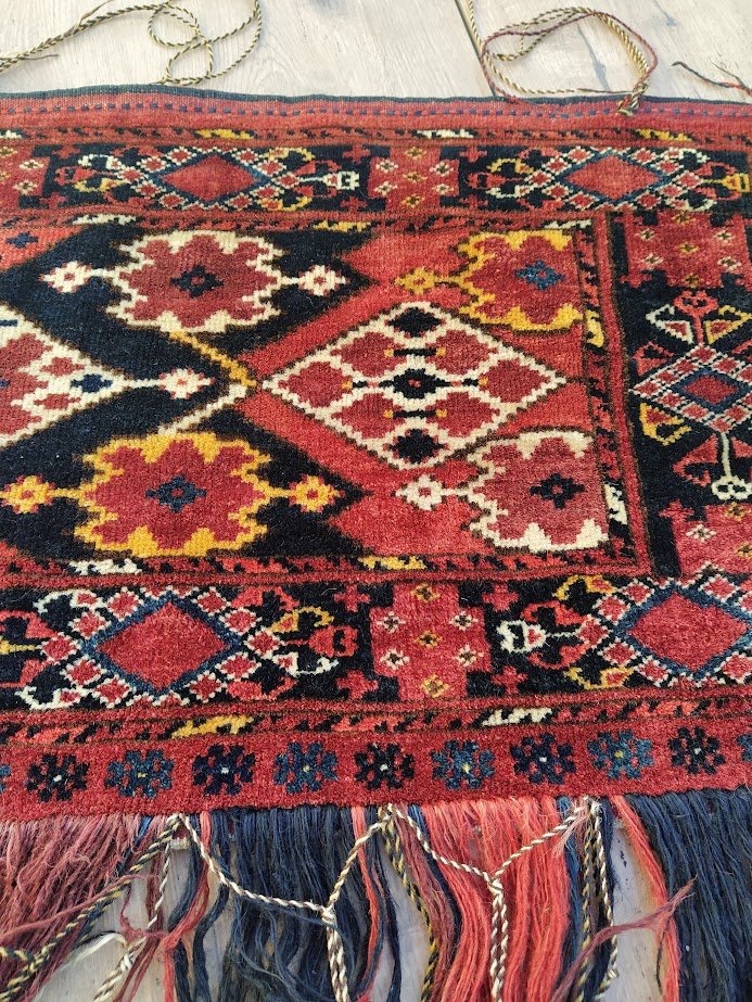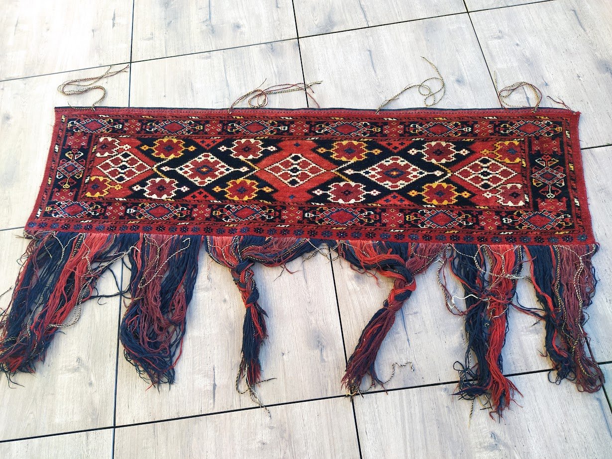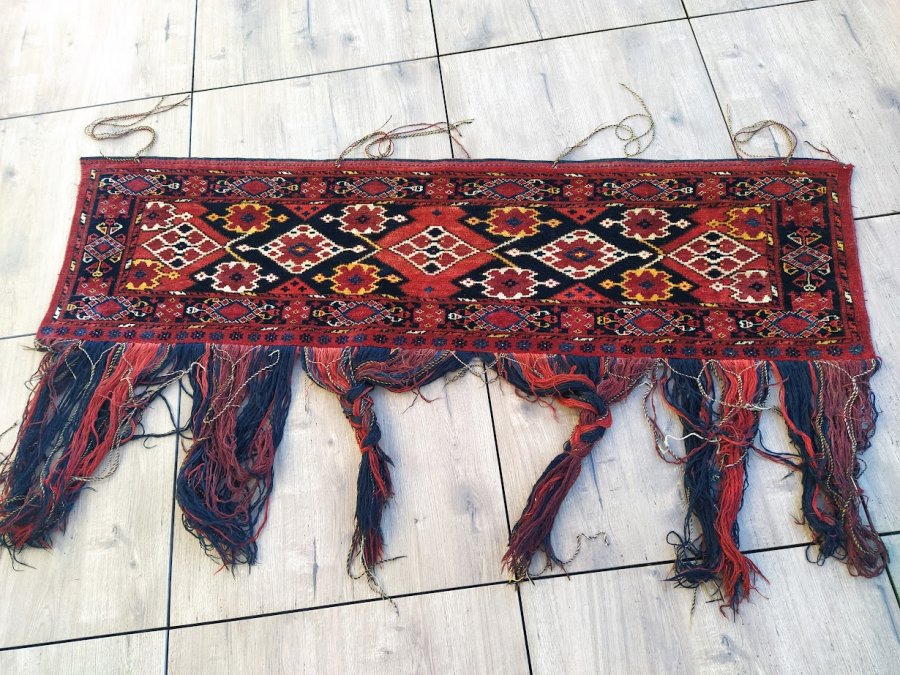 Ručně vázaná vlněná textilie, zvaná "torba", primárně používaná jako vak v jurtě, sloužící k uskladnění menších předmětů osobní potřeby. Vzhledem ke své zdobnosti používána také jako součást věna, výzdoba velbloudů ve slavnostním svatebním procesí a jako dekorace svatební jurty. Vzácný design, inspirovaný uzbeckými hedvábnými ikaty. Přírodní barvy.