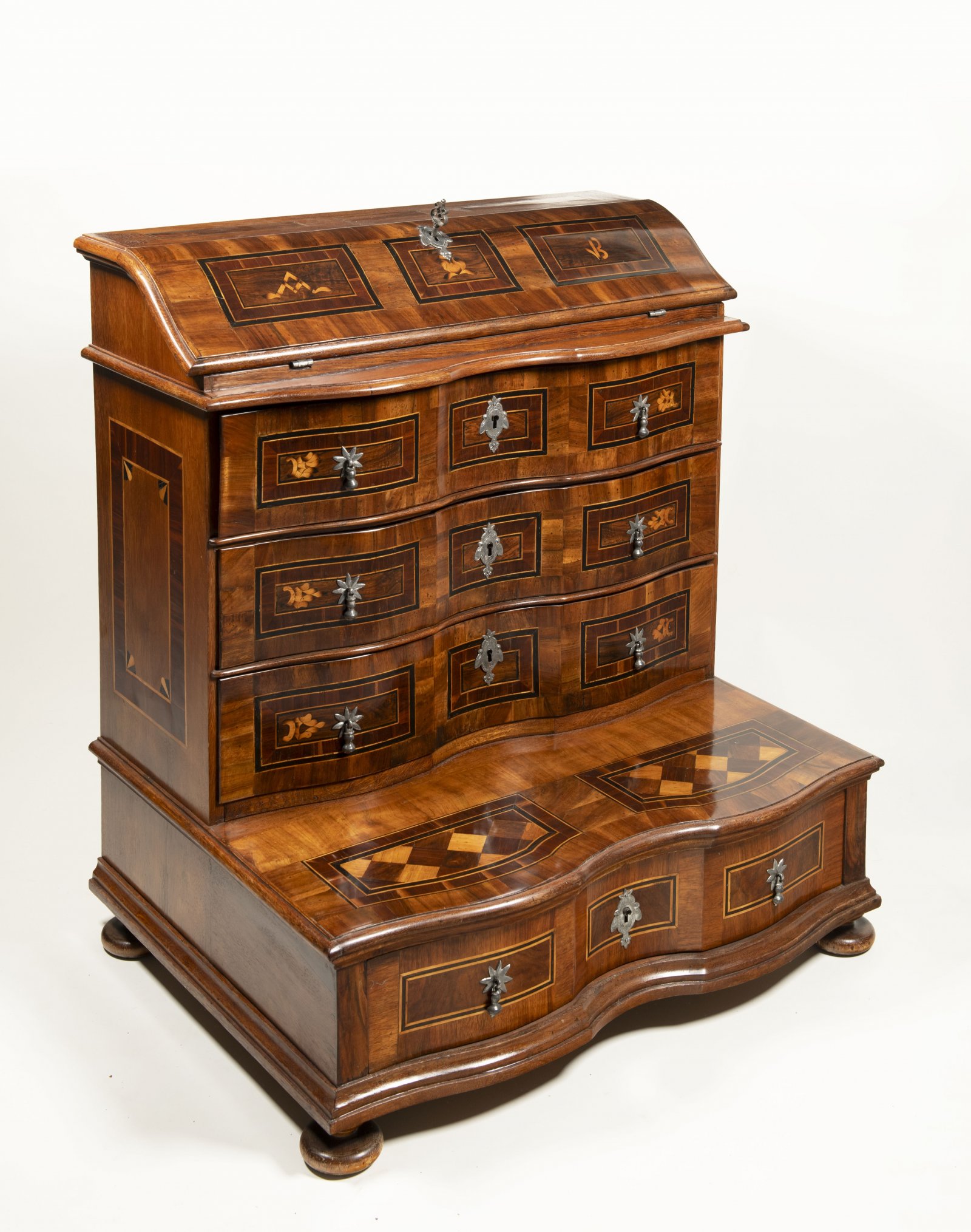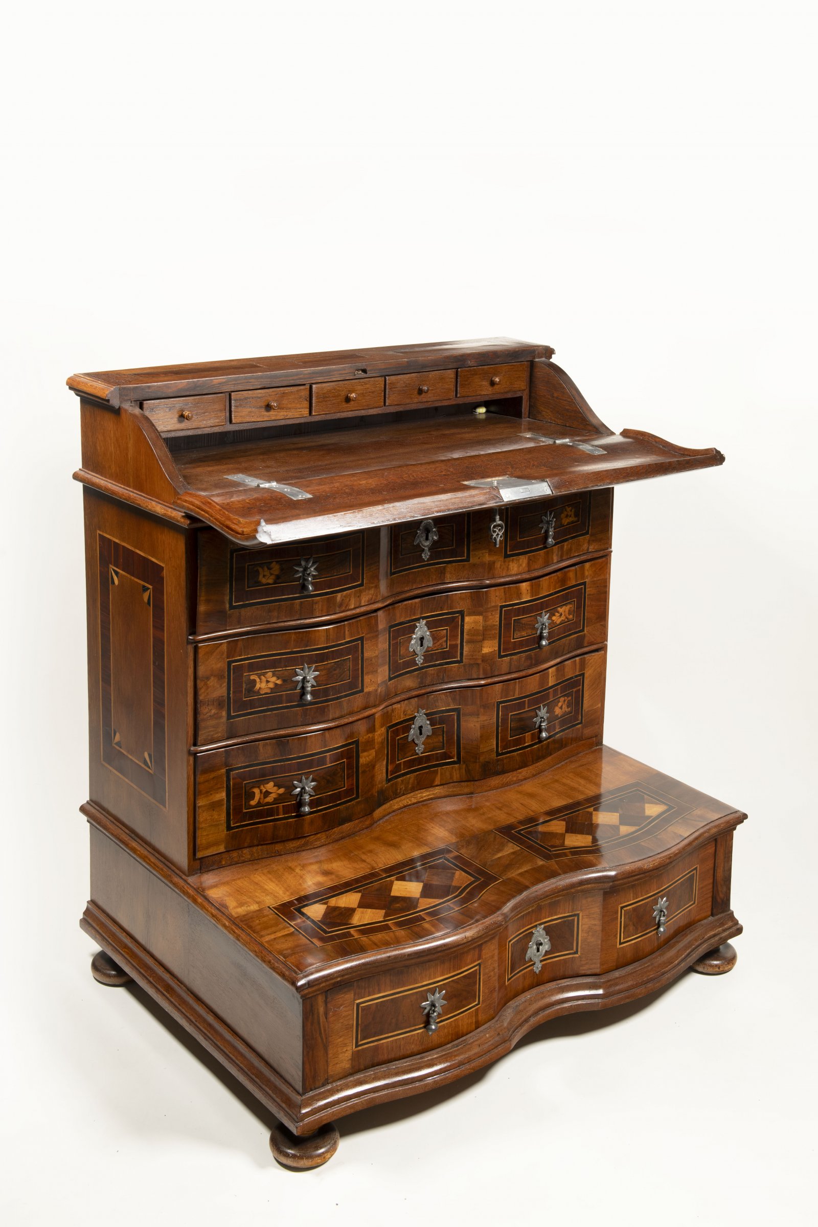 ořechové dřevo, javorové dřevo, černěné hruškové dřevo, cínované železo