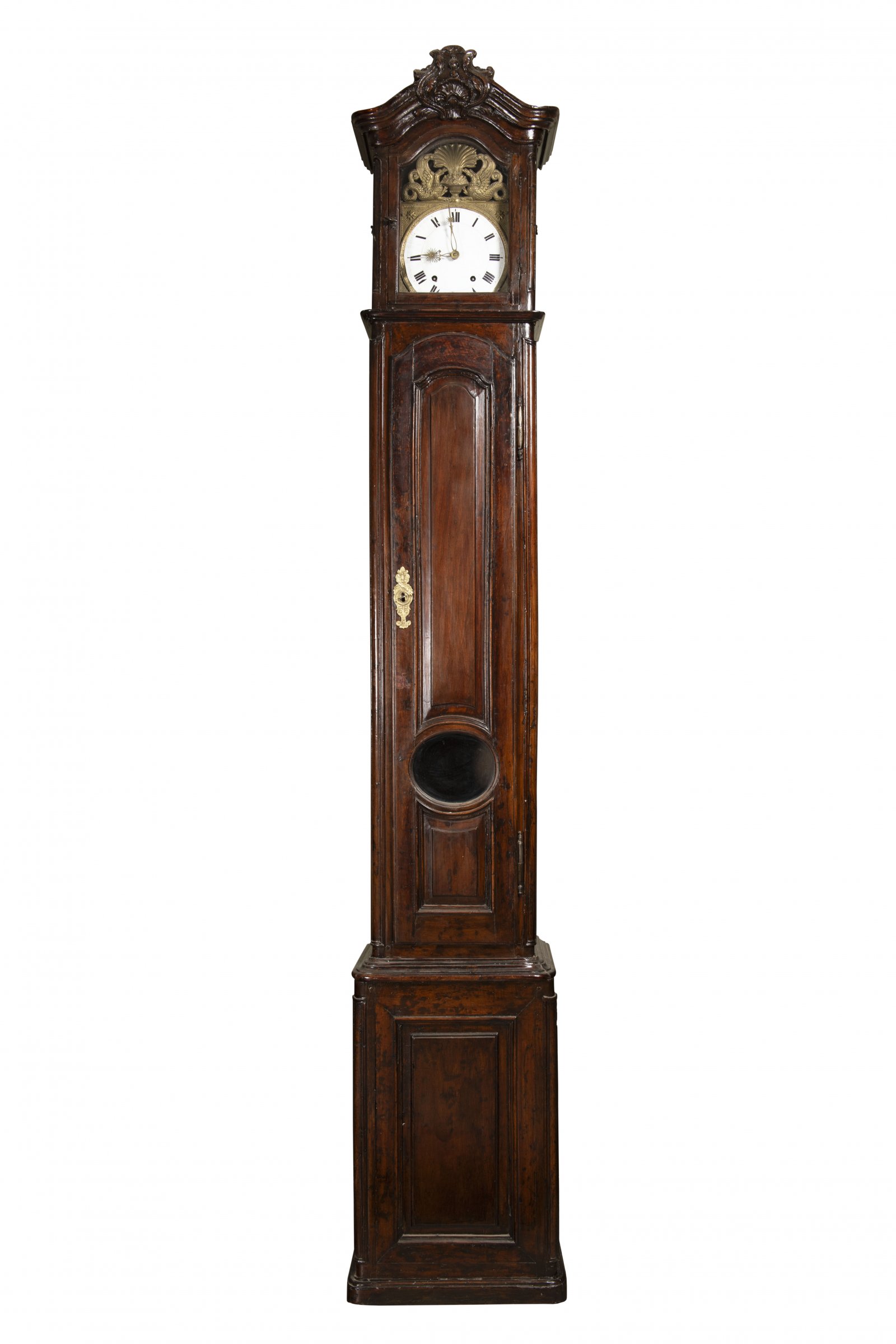 Vysoké stojací barokní hodiny. Bez záruky na chod hodinového stroje. Chybějící kyvadlo.