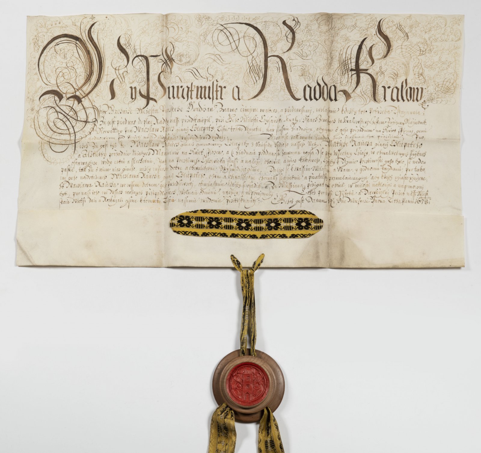 Doklad vystavený kanceláří purkmistra a městskou radou, že slovutný pan Wacslaw Rauch, řečený Chlupatý se svou manželkou Alžbětou "vložil na svět" Matieje Rauch, jinak Chlupatého, kterýžto není zavázán žádné poddanosti a na přímluvu otce, ctihodného měšťana, má se státi také měšťanem. Verso přípis kanceláře.