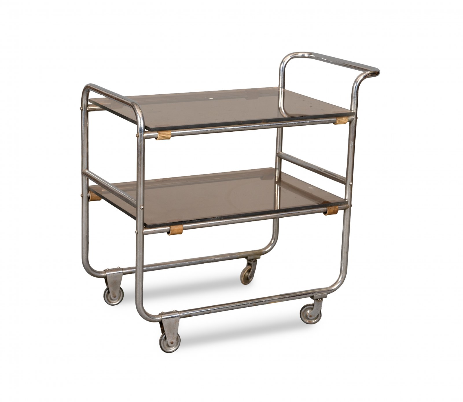 Servírovací stolek na kolečkách. Dobrý stav zachování, místy setřené chromování.