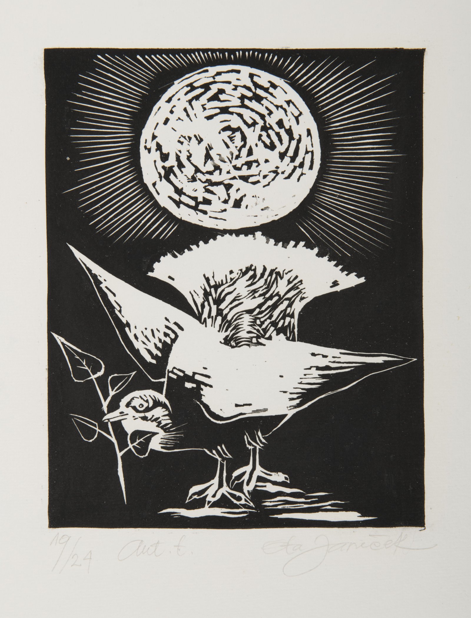 Grafický list z tvorby Oty Janečka, autorský tisk, číslováno 19/24.