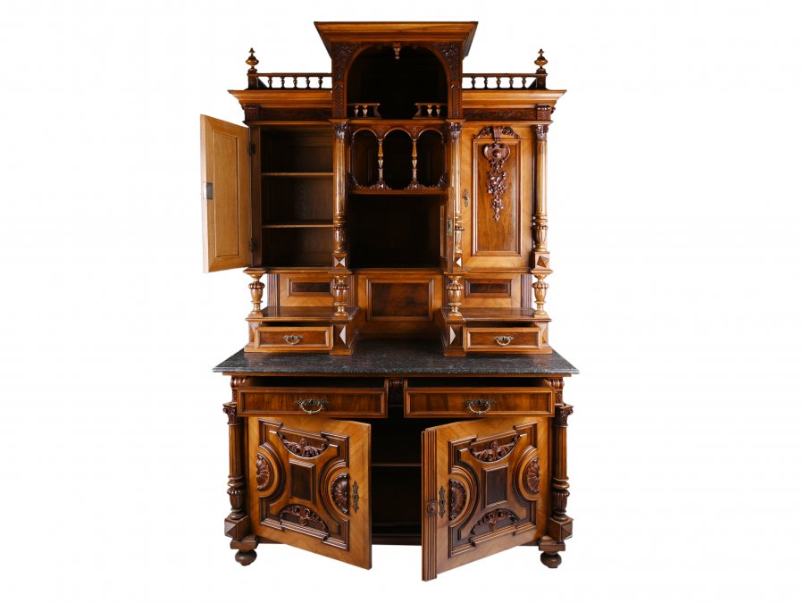 Veliký příborník, který stojí na bohatě vyřezávané podstavě s černou mramorovou deskou. Bohatě zdobený vršek se sloupy s korintskou hlavicí, balustrádou, rostlinnými motivy a několika úložnými prostory.