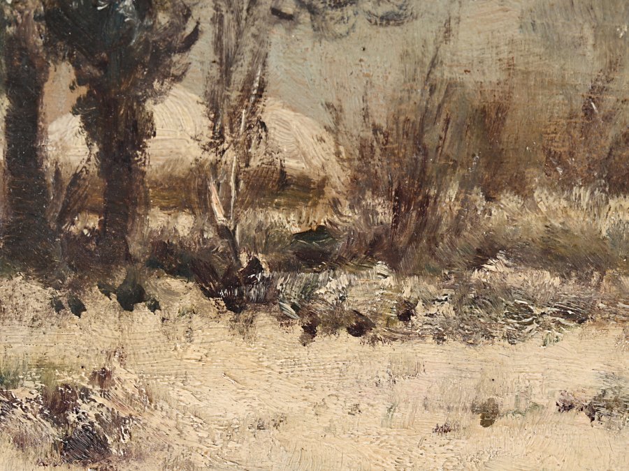 Obraz od následovníka či napodobitele Ludwiga Munthe, který se narodil v Norsku v kraji Sogn og Fjordane a studoval malbu na Kunstakademii v Německém Düsseldorfu. Dal by se téměř s jistotou označit za mistra malíře zimy. Jeho virtuozní krajinářská práce přinesla mnoho překrásných výjevů města i venkova, pobřeží a přístavů. Rád stavěl do kontrastu bělostný sníh a podvečerní oblohu, či rudé tóny západu slunce.