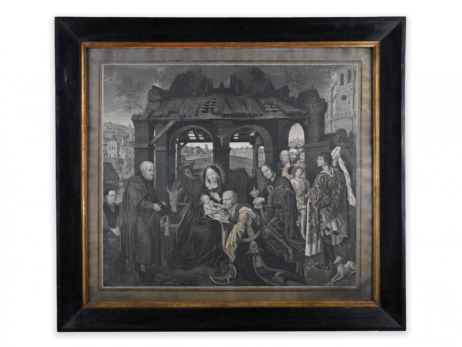Reprodukce Van Eyckova Klanění tří králů z roku 1830 od Johanna Nepomuka Strixnera (Altötting 1782-1855 Mnichov) a Ignaze Bergmanna.