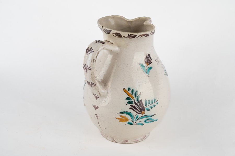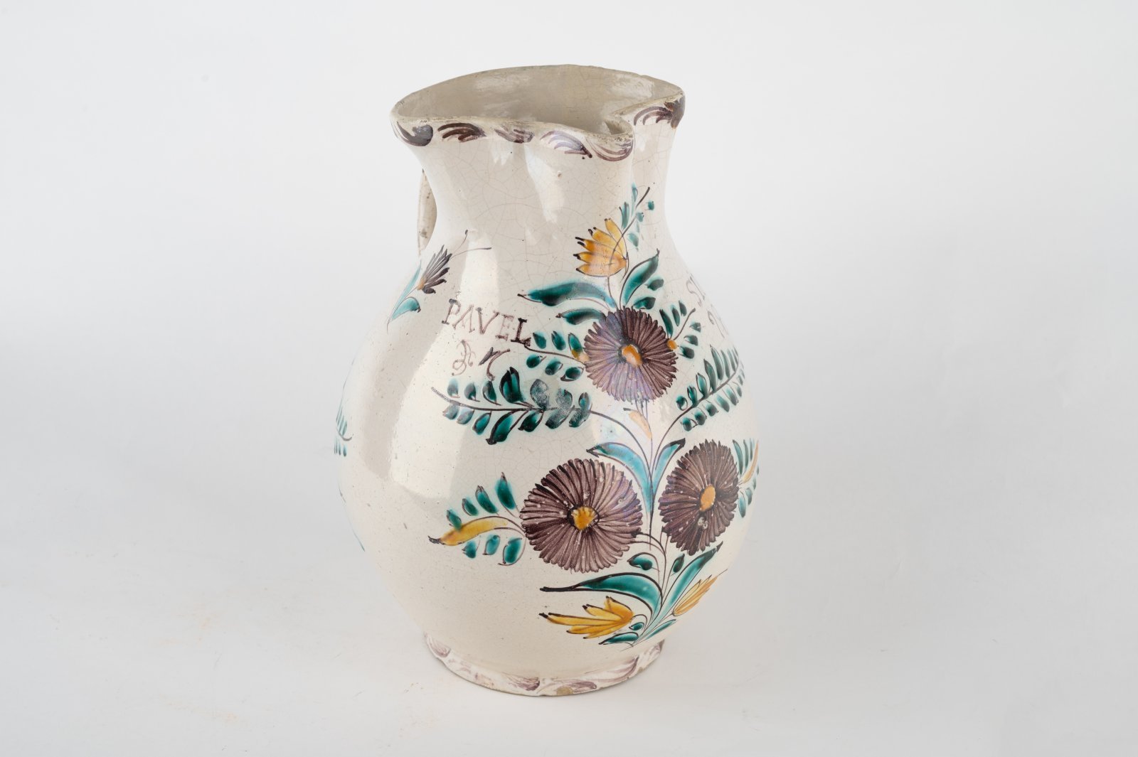 Moravský džbánek s květinovým dekorem, datací a jménem: Pavel Šimek.