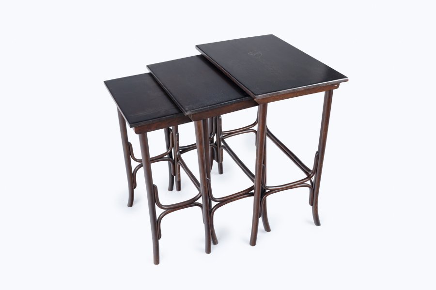 Do sebe zasouvací celkem tři stolky vyrobila firma Thonet z masivního bukového dřeva patrně mezi lety 1915-1925. Velmi dobrý stav.