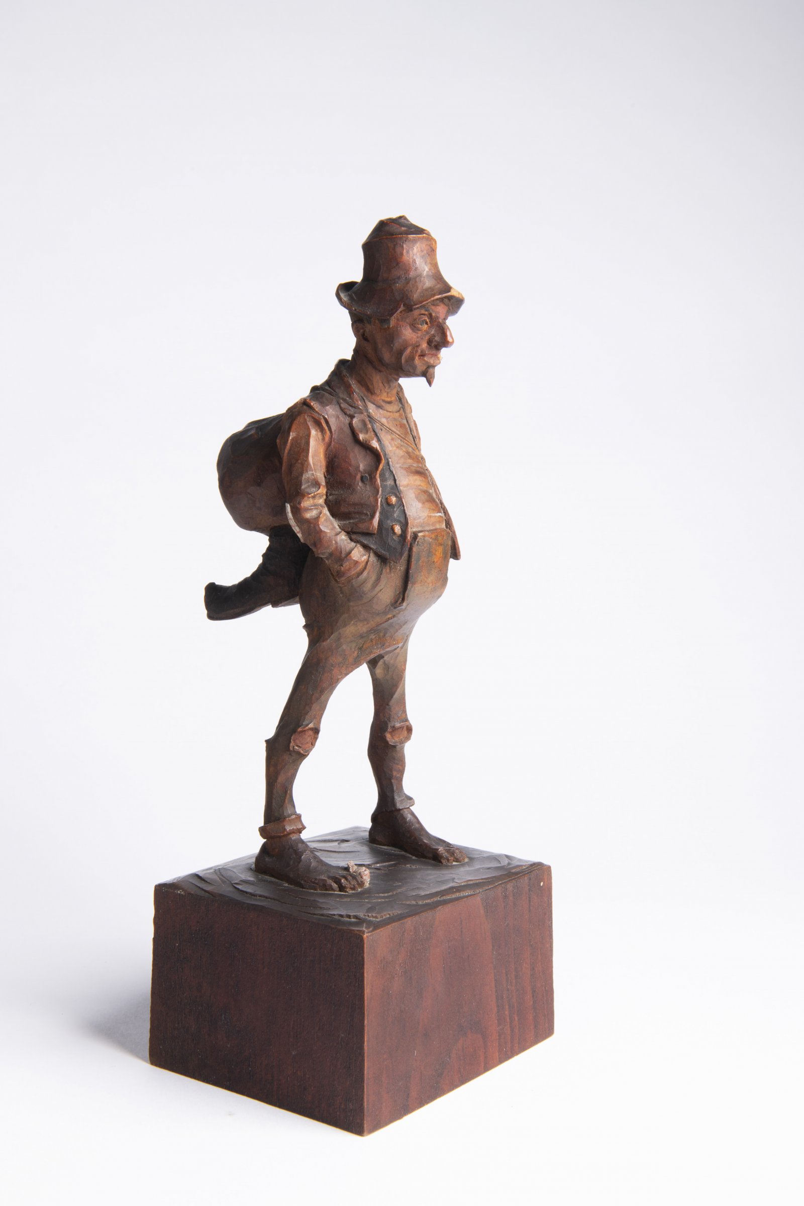 Emil Schwantner vynikal ve zpracování figurálních témat a věnoval se i protiválečné tématice. Mytologická a lidová témata tvoří podstatnou část jeho tvorby. Patří tam bezesporu i tulák, který vyniká svým řemeslným zpracováním i v takto decentním formátu. Mezi dalšími zvolenými tématy můžeme zmínit například Satyra, Raněnou Amazonku nebo Krakonoše.