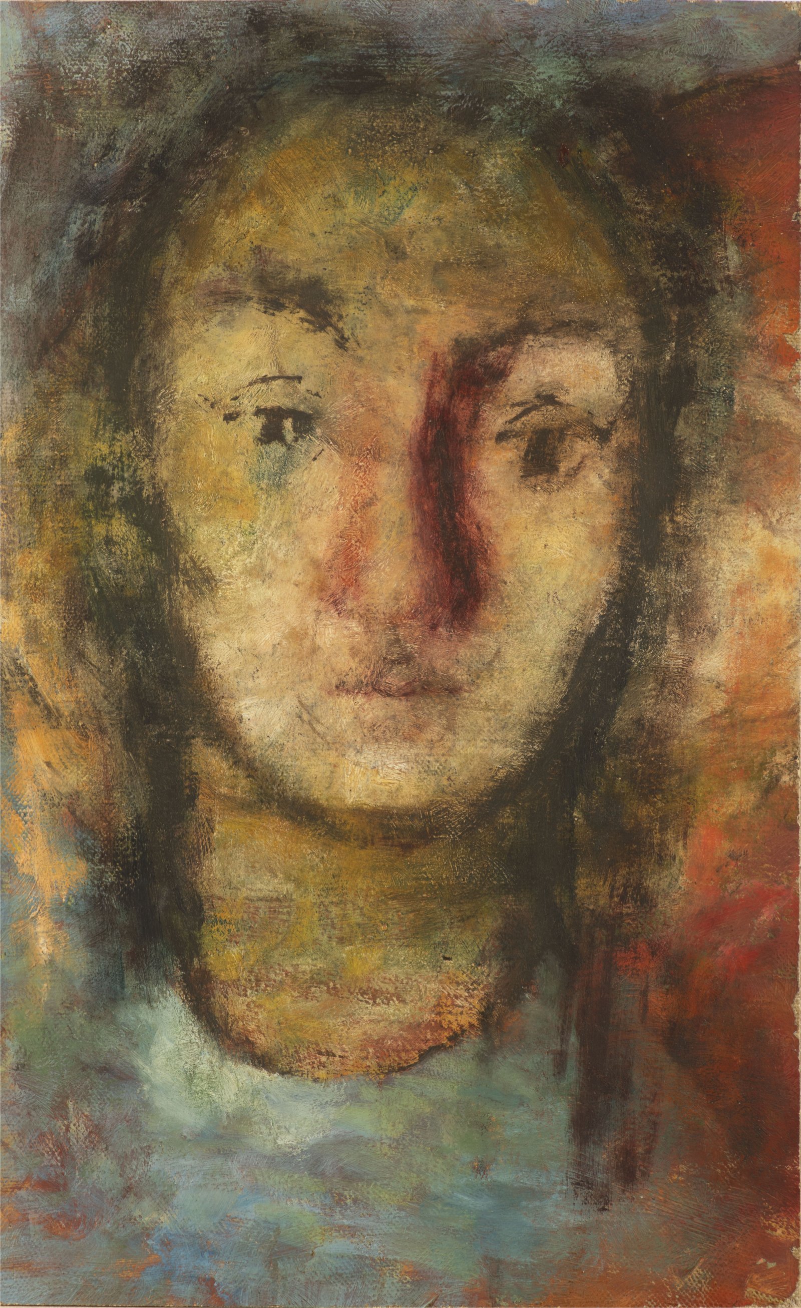 Jedná se o vzácnou ukázku ze série portrétních hlav Oty Janečka, které vznikaly začátkem čtyřicátých let. Byť se v této době soustředil na realistické ztvárnění portrétovaného, vykazují malby velmi citlivou práci v nánosů barev, které dávají výrazům lyrický nádech. Stejně jako v případě Janečkova autoportrétu z této doby, charakteriským rysem tváří je červený nos. Dílo pochází z pozůstalosti autora z jeho pražského ateliéru v ulici Bubenská 1376/39. Dílo je evidováno v soupise díla pod číslem 10116 viz verso obrazu.