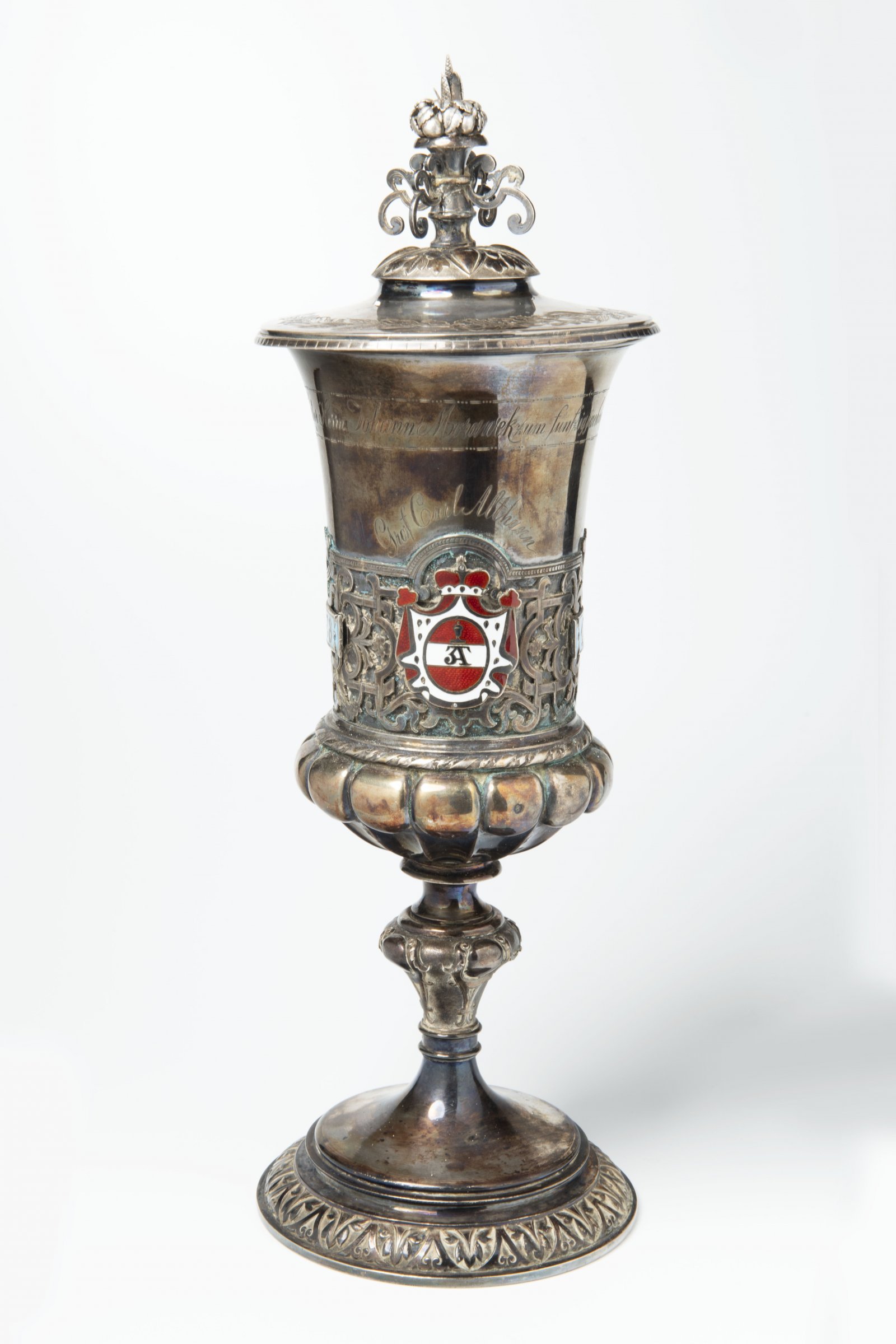 Bohatě zdobený stříbrný pohár s víkem v etuji byl udělen Michaelem Karlem hrabětem z Althannu za věrné služby Václavu Morávkovi. Pohár zdobí erb rodu Althannů. Puncováno.