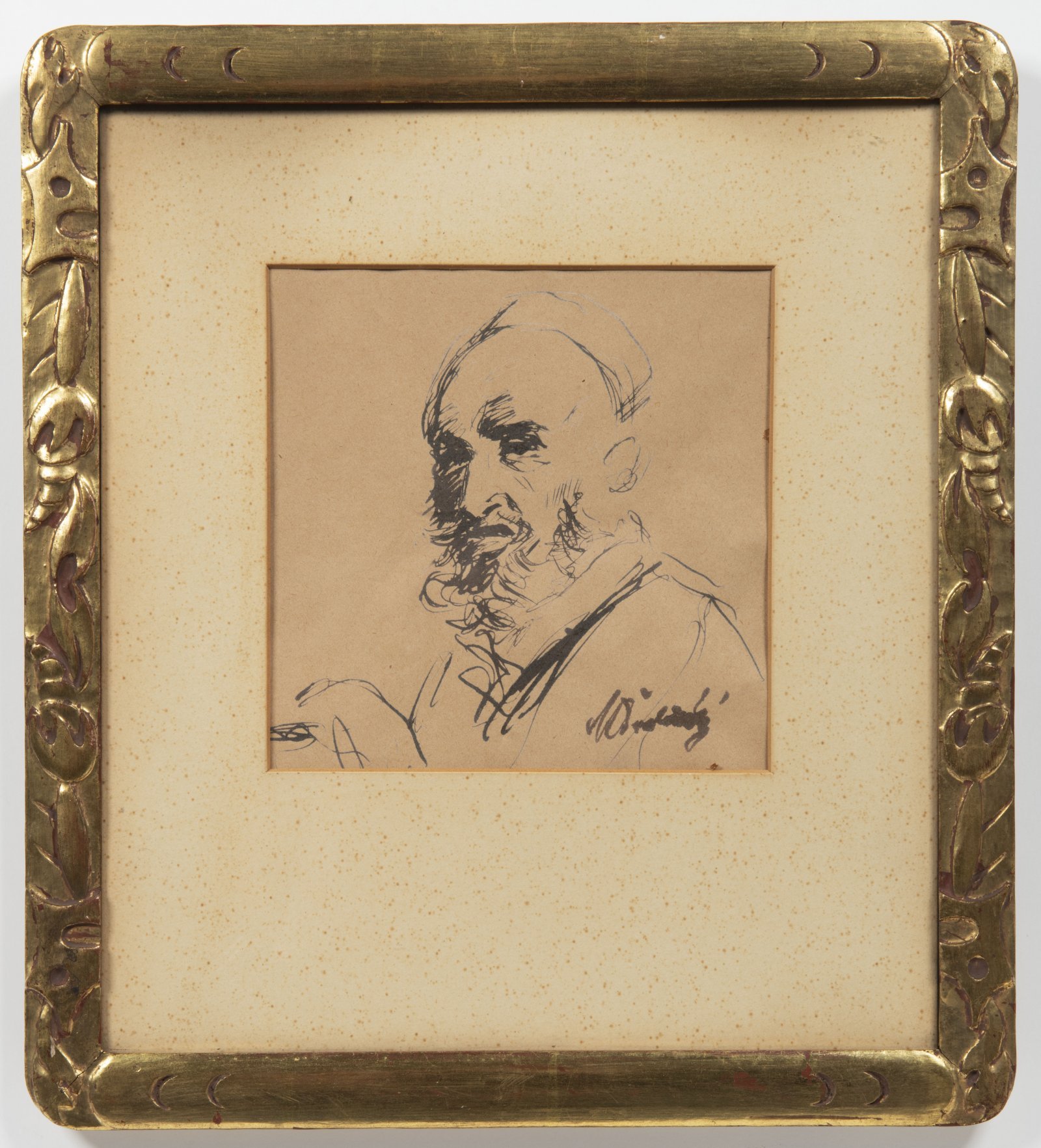 Svižná studie muže od Maxe Švabinského, dokonalého kreslíře a rytce neobyčejné technické zručnosti s velkým smyslem pro detail. Přední český malíř a grafik, studoval u M. Pirnera na AVU v Praze, kde později působil jako profesor a vedl grafickou speciálku. Dílo pochází ze sbírky Josefa Drahoňovského.