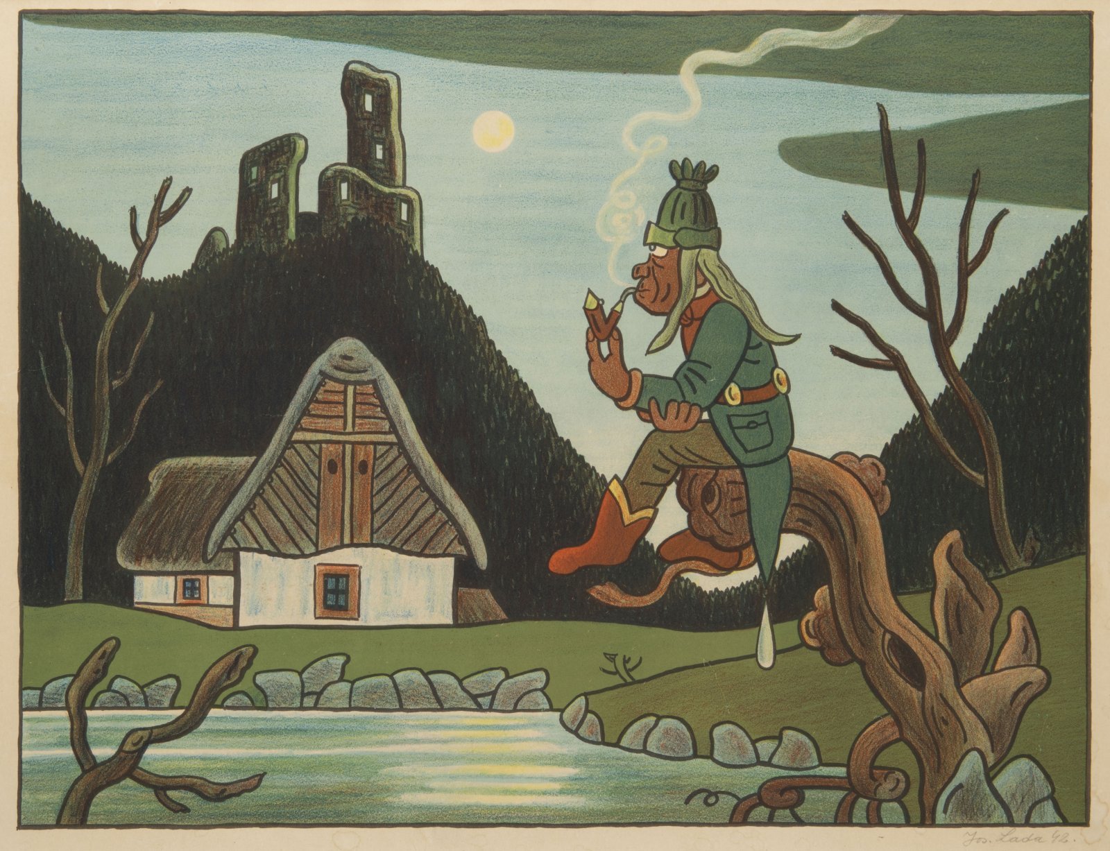 Vodník sedící u rybníka a bafající z dýmky patří ke koloritu ladových pohádkových krajin, které pronikly do povědomí široké veřejnosti. Zjednodušená barevná paleta a oblé pevné kontury spadají do rukopisného rámce Ladovy tvorby, námět je pohádkově líbivý a zvláště dětem velmi dobře srozumitelný.