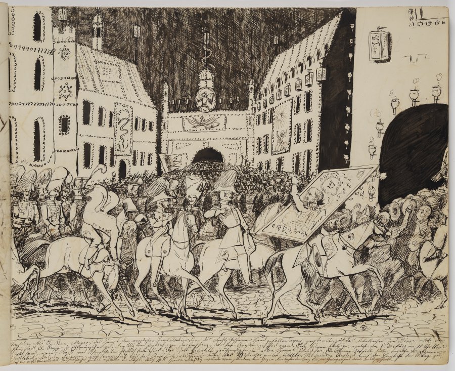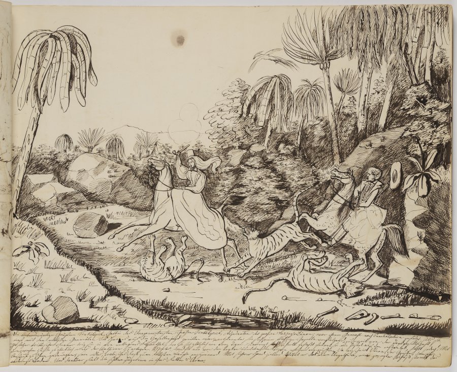 Výpravný spis o dobrodružsvích hraběte Herzog-Denona představuje na jedenačtyřiceti listech formou obrázků, kreslených tuší nevšední zážitky řečeného hraběte. Každý výjev je pak pod čarou doplněn komentářem.