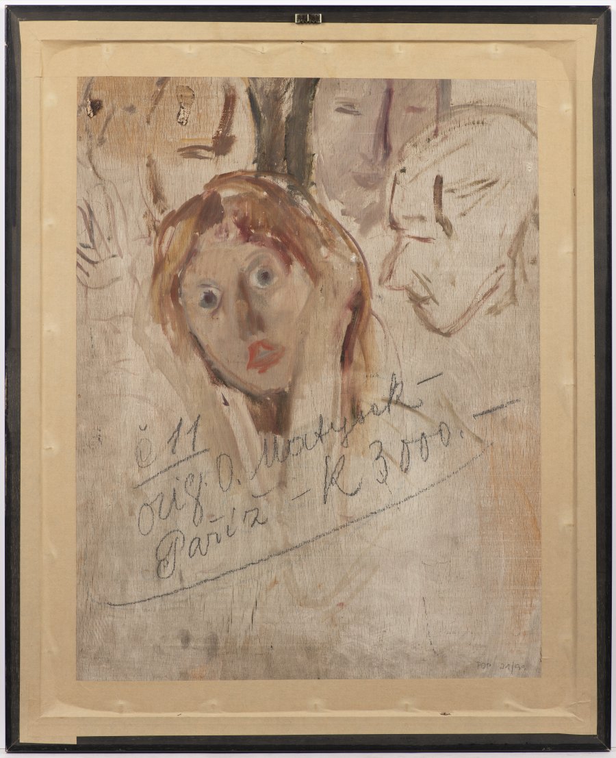 Sign. vpravo dole: O.MATYSEK, vzadu skica dvou hlav a přípis: č.11/ orig. O. Matysek/ Paříž - k 3000,-