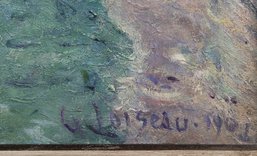 Obraz Útesy v Étretat je ojedinělou ukázkou francouzského post-impresionismu, reprezentující dílo jedné z jeho předních osobností, Gustava Loiseau. Divácky i sběratelsky atraktivní dílo od autora na českém trhu výjimečného. Od 90. let 19. století zaznívá jméno tohoto mimořádně sensitivního krajináře ve spojitosti s bretaňskou uměleckou kolonií kolem Paula Gauguina, známou jako pont-avenská škola. Pokračoval v tradici plenérové malby, objevoval mžikové kouzlo krajiny v nestálosti, barevných proměnách, světelných náladách ve snaze pravdivě zachytit její přirozenou krásu, tak jak ji poznal v plátnech Clauda Moneta či Camilla Pissarra. Postupně si vytvořil vlastní specifický druh pointilistické malby, charakteristický kladením čistých barevných skvrn vedle sebe, s důrazem na esenciální působení světla, jasnou, zářivou a zároveň odlehčenou barevnost a vzdušnou náladu zobrazené scény. Tyto principy rozvíjel ve zdánlivě všedních záběrech bretaňské a normandské krajiny, kde s oblibou trávil letní měsíce. Svým mimořádným nadáním a malířskými kvalitami si již v 90. letech 19. století v Paříži získal řadu obdivovatelů, včetně význačného galeristy a stěžejního mecenáše francouzských impresionistů Paula Durand-Ruela. Nabízené plátno, pocházející ze sbírky významného prvorepublikového diplomata a velvyslance v Paříži, Štefana Osuského, lze považovat za krásné, nevšedně působivé a vysoce hodnotné dílo.