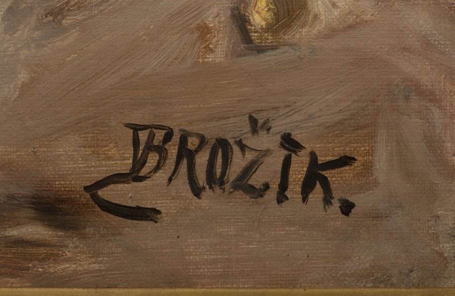 Z odborného posudku PhDr. Naděždy Blažíčkové-Horové: "Předložený Portrét mladé ženy s květinami, dnes neznámého jména, je nesporná práce Václava Brožíka, nejspíše z osmdesátých let. Koncem 19. století byl Brožík vyhledávaným portrétistou, a tak zachytil řadu podob významných osobností své doby a životního okruhu. Všechny Brožíkovy podobizny charakterizuje individuální vystižení tváře, delikátní barevnost a hladká minuciózní malba, kterou vykazuje i předložený portrét. Pozorujeme v nich silný vliv vlámské portrétní barokní malby, zejména Anthonise van Dycka. Stejně jako on i Brožík měl smysl pro malířské vyjádření úpravy šatu, barvou uměl mistrně rozlišit druhy látek i věrně zobrazit šperk. Jak je pro něho typické, tmavou až černou barvu v několika odstínech Brožík aplikoval také na nekonkrétní pozadí, s čímž velmi působivě kontrastuje transparentní provedení pleti mladé dámy."