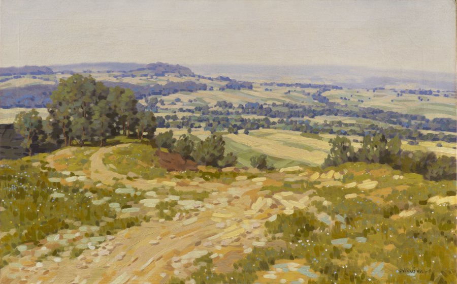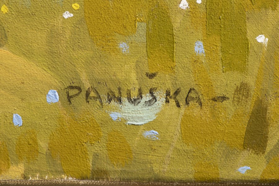 Panuška celoživotně lnul láskou k přírodě a prosté motivy z volné krajiny začal malovat již na pražské Akademii kolem roku 1893. Po dvou dekádách příklonu k symbolismu, z kterých vycházejí známé pohádkové a strašidelné výjevy se po roce 1920 opět soustředil na motivy z českého venkova. Z tohoto okruhu tvorby pochází i zde představená krajina se svěží uvolněnou barevností. Panuška je považován za nejoriginálnějšího žáka slavné Mařákovy školy, jenž v díle spojuje starší realistickou tradici s modernějšími impresionistickými postupy malby. Významně navazuje na Antonína Chittussiho, jehož obrazy často zachycovaly právě rybníky, mokřady a lučiny.