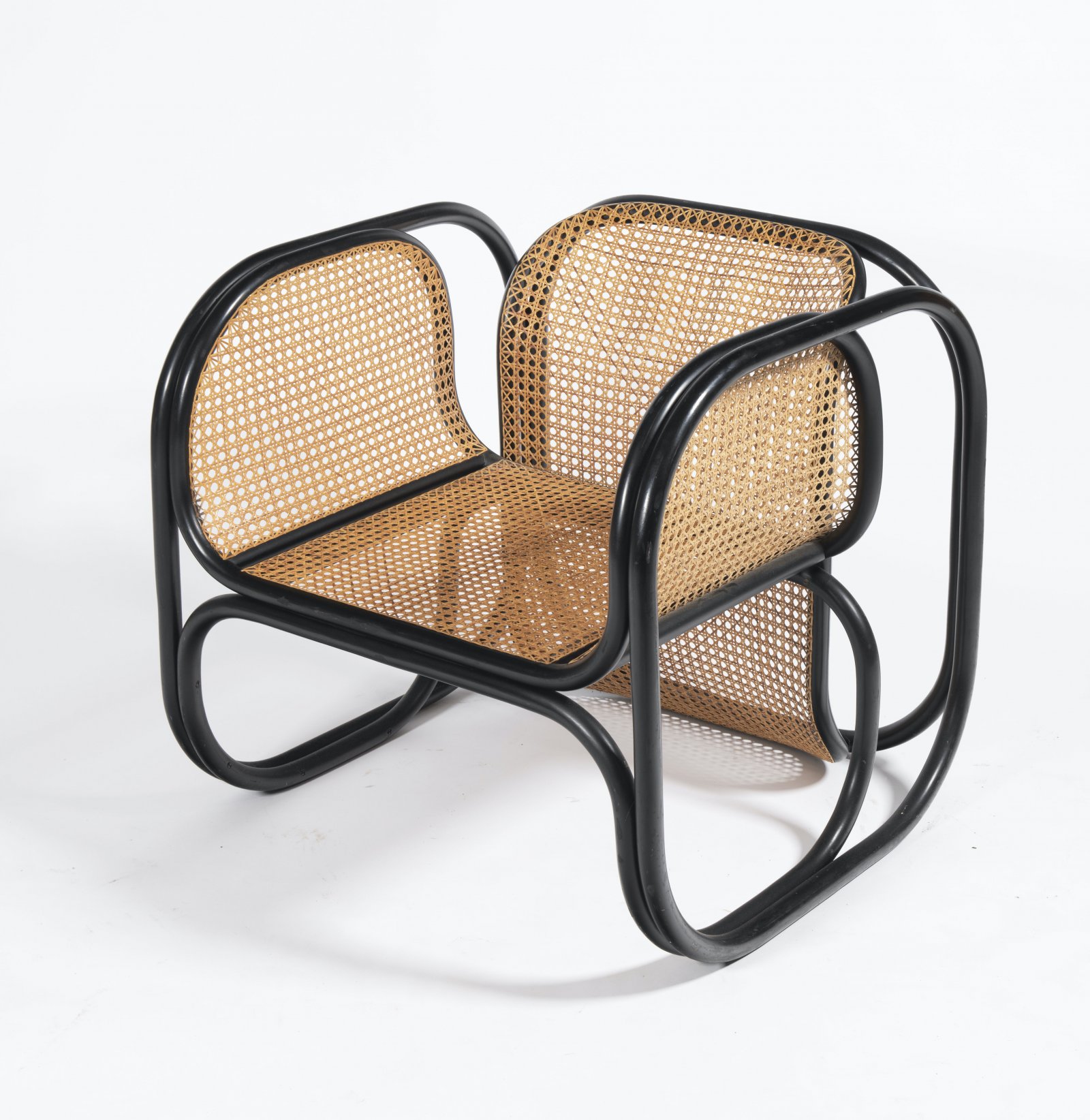 Nabízená párová designová křesla z ohýbaného bukového do černa mořeného dřeva vyrobila dle návrhu Zdeňka Rothbauera firma Ton Bystřice pod Hostýnem do mobiliáře československé ambasády ve Stockholmu, na které se podíleli kromě Zdeňka Rothbauera architekti Jan Bočan a Jan Šrámek, a mnoho dalších předních českých umělců. Původní zachovalý stav bez známek poškození.