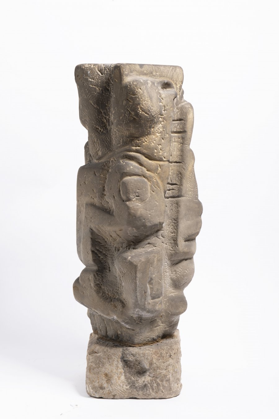Jiří Bradáček graduated from the State School of Ceramics in Prague in the studio of Václav Vokálek. In 1939 he was accepted to the School of Applied Arts, where he studied in the years 1939 - 1944 in the studio of Karel Dvořák. Bradáček first worked in the Duchcov porcelain factory Royal Dux, for which he designed small sculptures. At the beginning of his work, Bradáček was influenced by Otto Gutfreund's cubism and social civilism and Emil Filla's sculptures. In the spirit of modernism, the presented sandstone sculpture, which bears the typical features of his exterior works.
