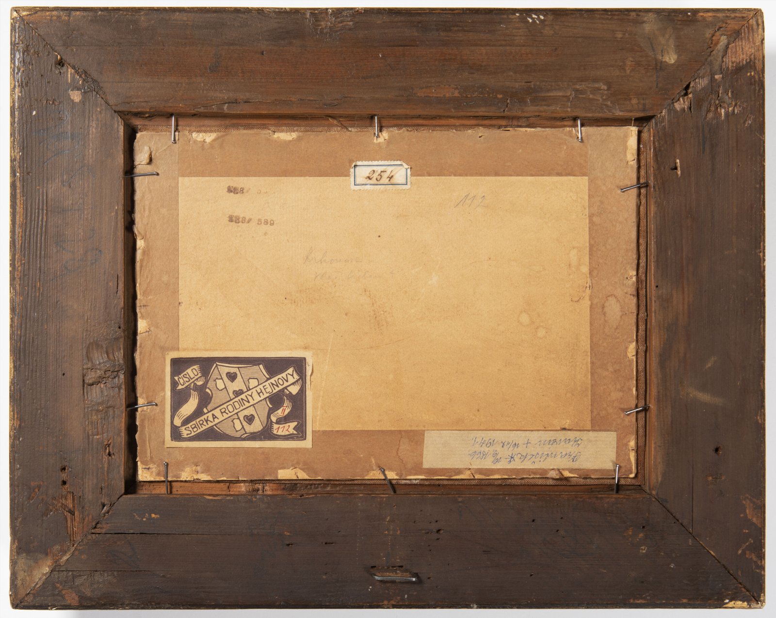 From the expert opinion of PhDr. M.Sc. Michaela Zachař: "The painting under review was apparently created during wanderings in nature according to reality, and the painter dealt with a naturalistic conception of materials, terrain, vegetation in a well-perceived light mood. It is an early work from the spring of 1894, where Kaván already has a greater experience of plein air work and considerable self-assuredness in the expression, which already surpasses Chittussi. This is a collector's quality plein air from the Giant mountains wanderings, part of the former high-quality First Republic Hejn's collection from Poděbrady (no. 112)."