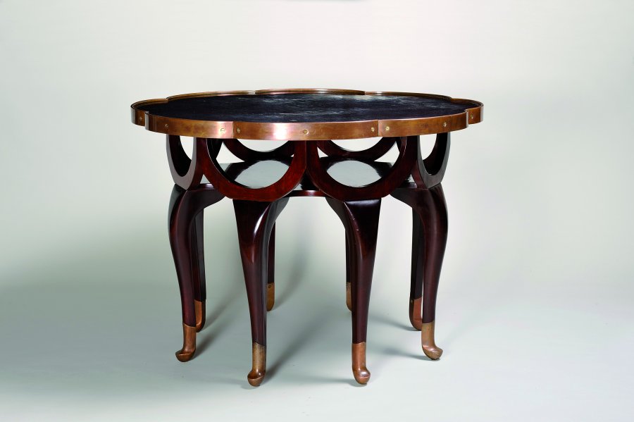 Stained varnished wood, bronze, manufactured by Fridrich Otto Schmidt Wien