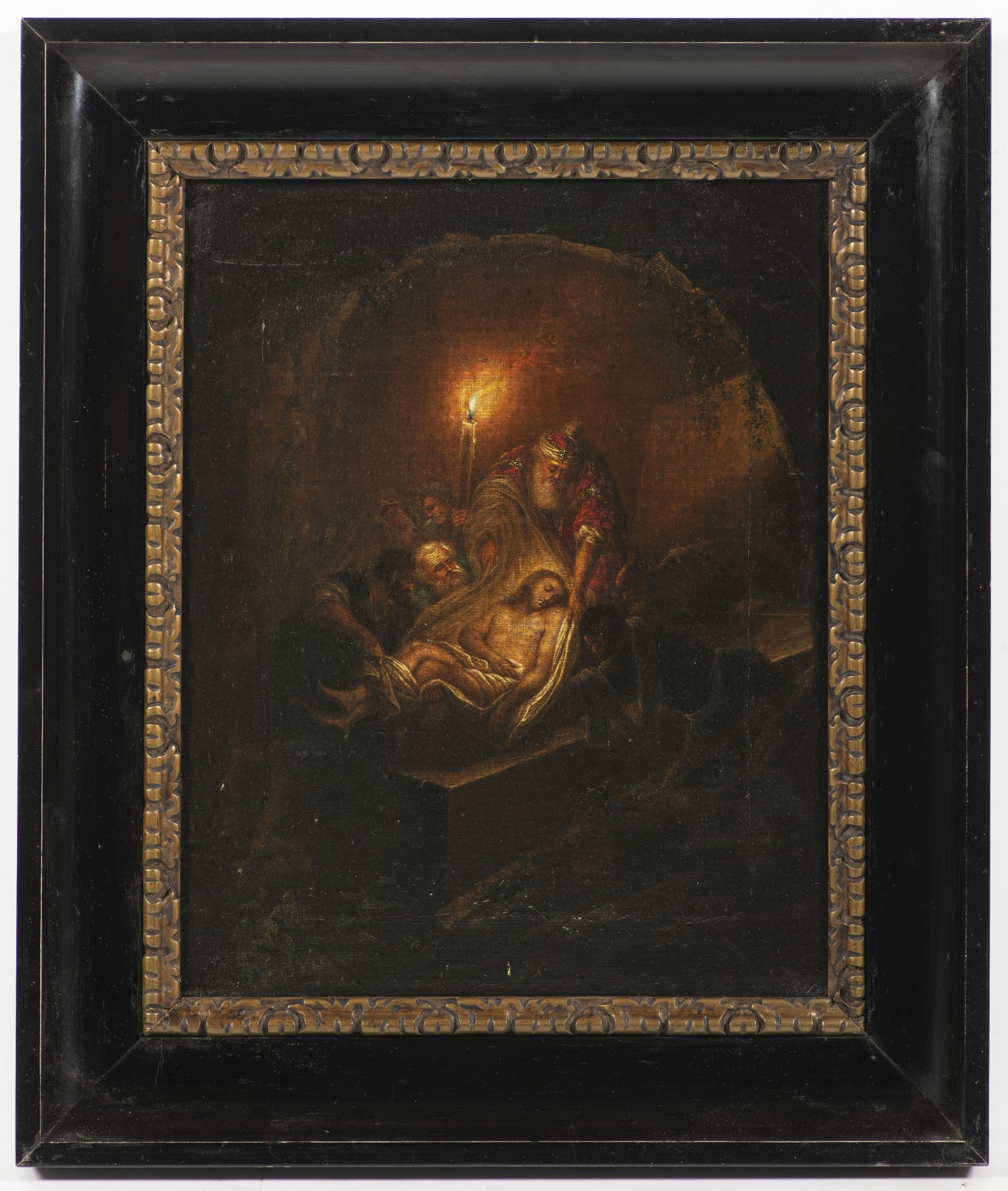 A thematic Passion painting by an unknown Dutch artist; several related versions with similar elements have appeared on the market, with minor variations in detail.