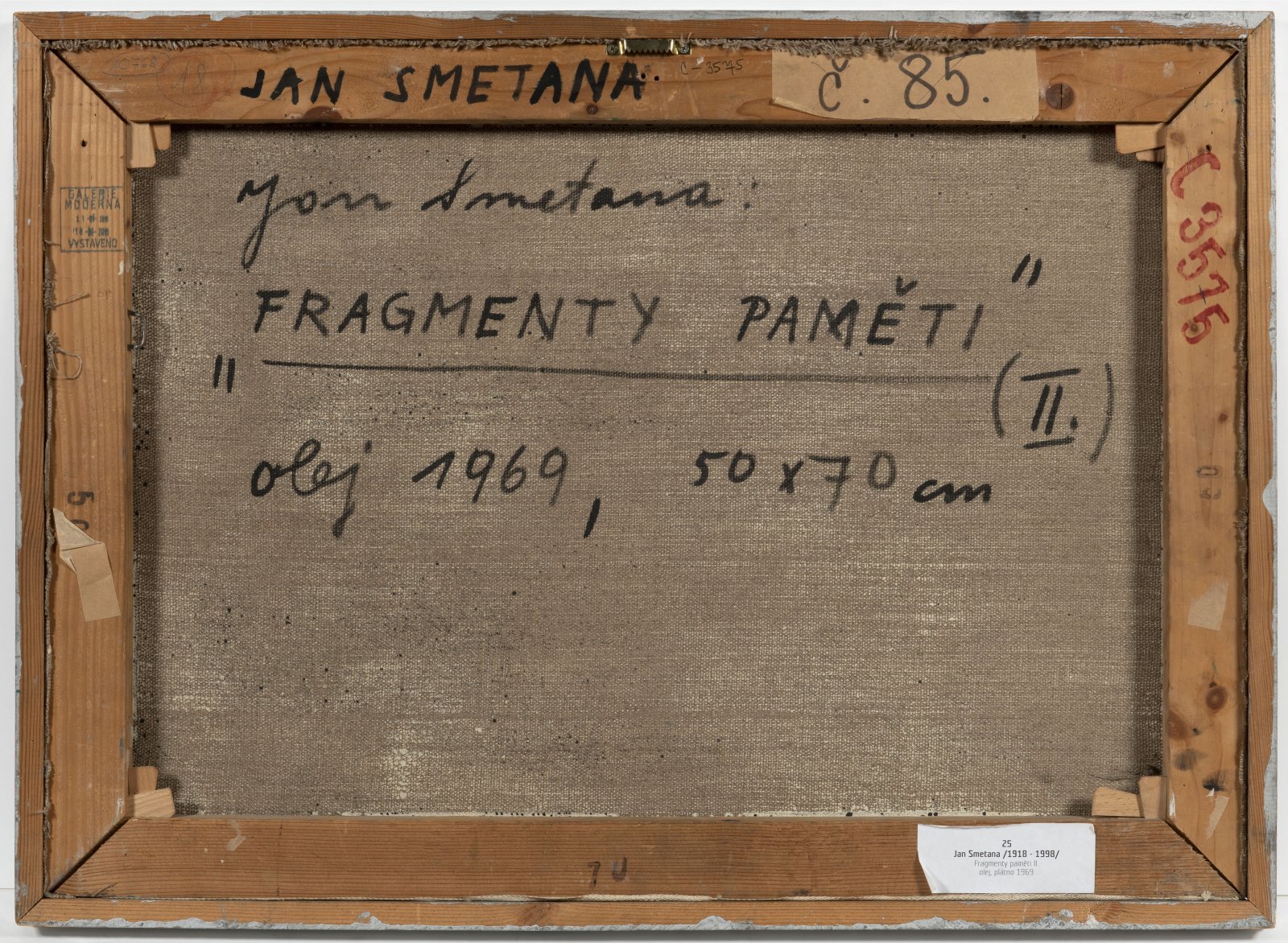 The work Fragments of Memory II is part of a harmonious whole inspired by urban corners. Jan Smetana composes using organic and structural elements of civilization. The city and its periphery, the aesthetics of seemingly mundane corners, are themes that inspired the important Czech modern painter and graphic artist Jan Smetana. In his work, he placed great emphasis on light, lines, color shades, and their saturation.
