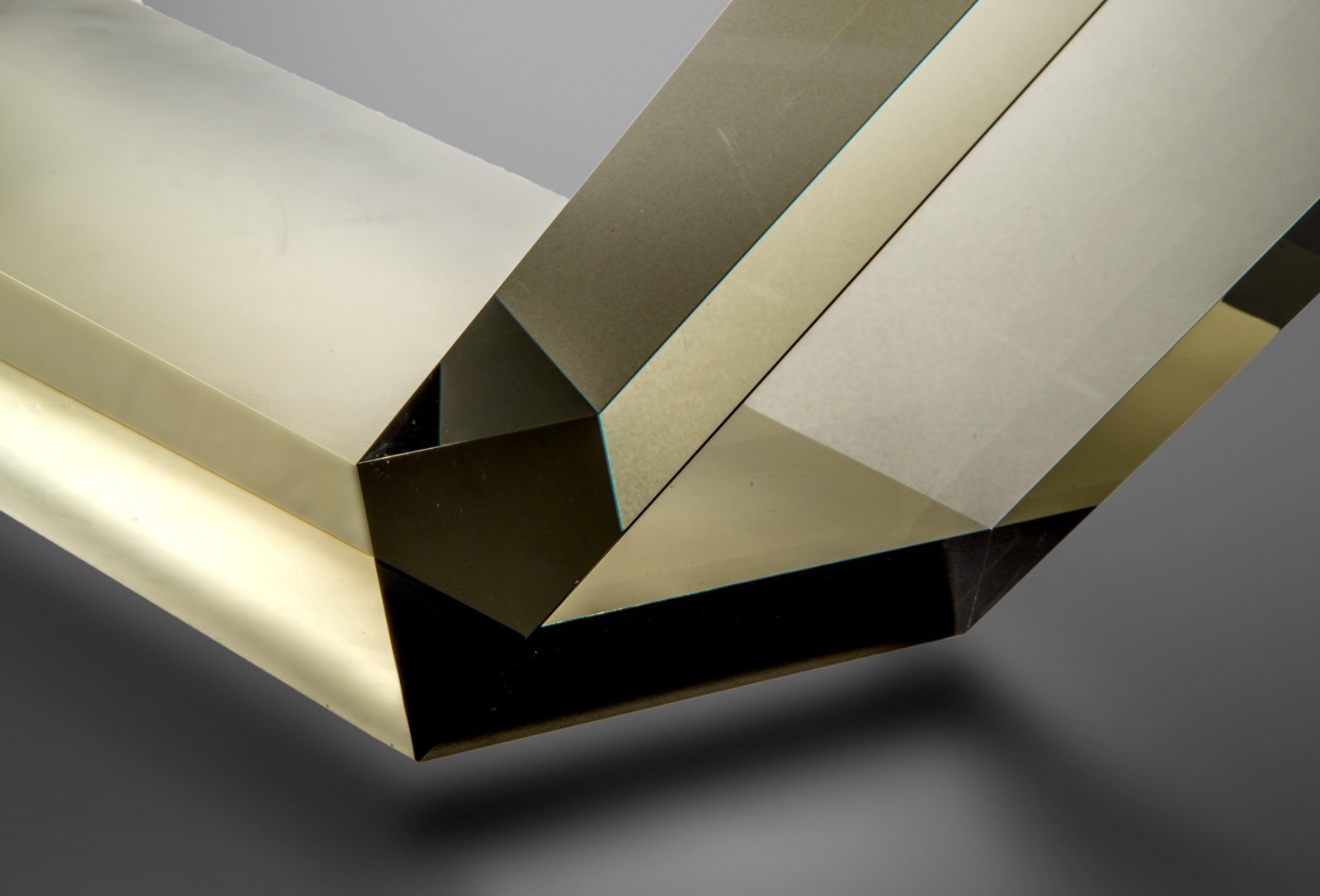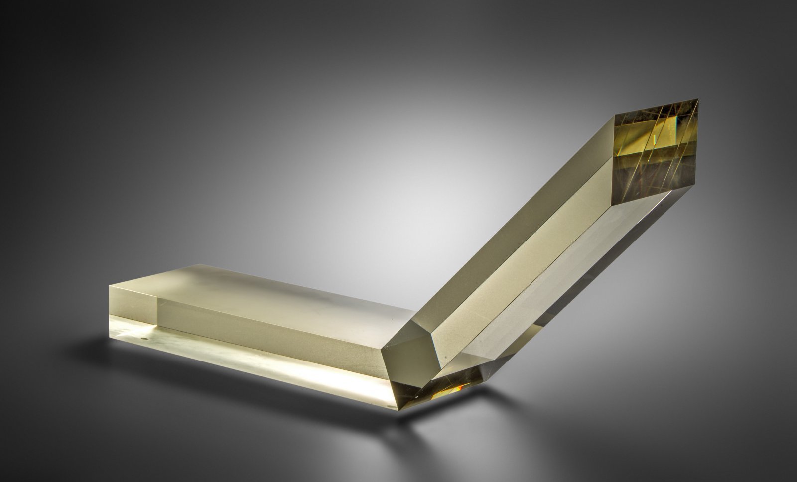 Václav Cigler is the founder of the conceptual perception of glass as an artistic expression. In his work, he anticipated the emerging concepts of contemporary artistic expression (constructivist tendencies, minimalism, land art, and light and kinetic sculpture). He has been working with glass, mainly optical glass, since the late 1950s. Over time, we can see how his studies have shifted toward the expression of precise geometric forms in order to emphasize the fluid nature of the landscape, capture the purity of space, or highlight the interaction between space and man. This use of glass optics broke through the international contemporary art industry and created a fresh form of artistic expression. Provenance: important private collection, New York, currently Prague.