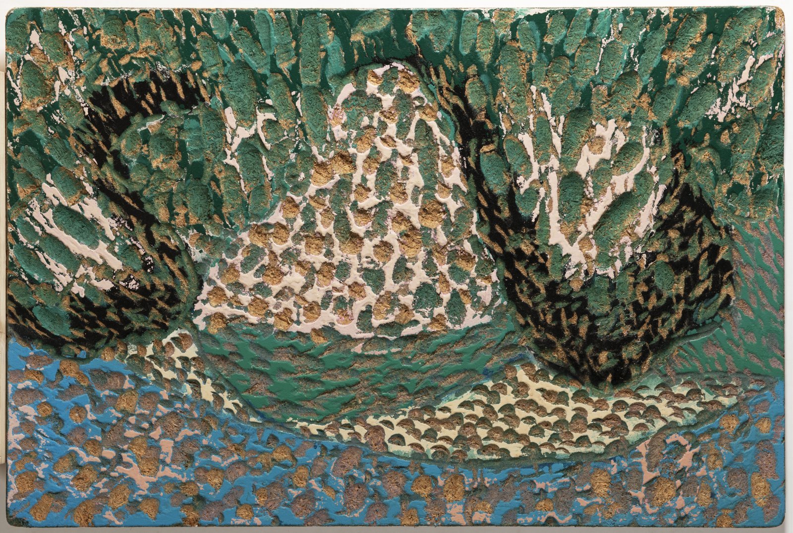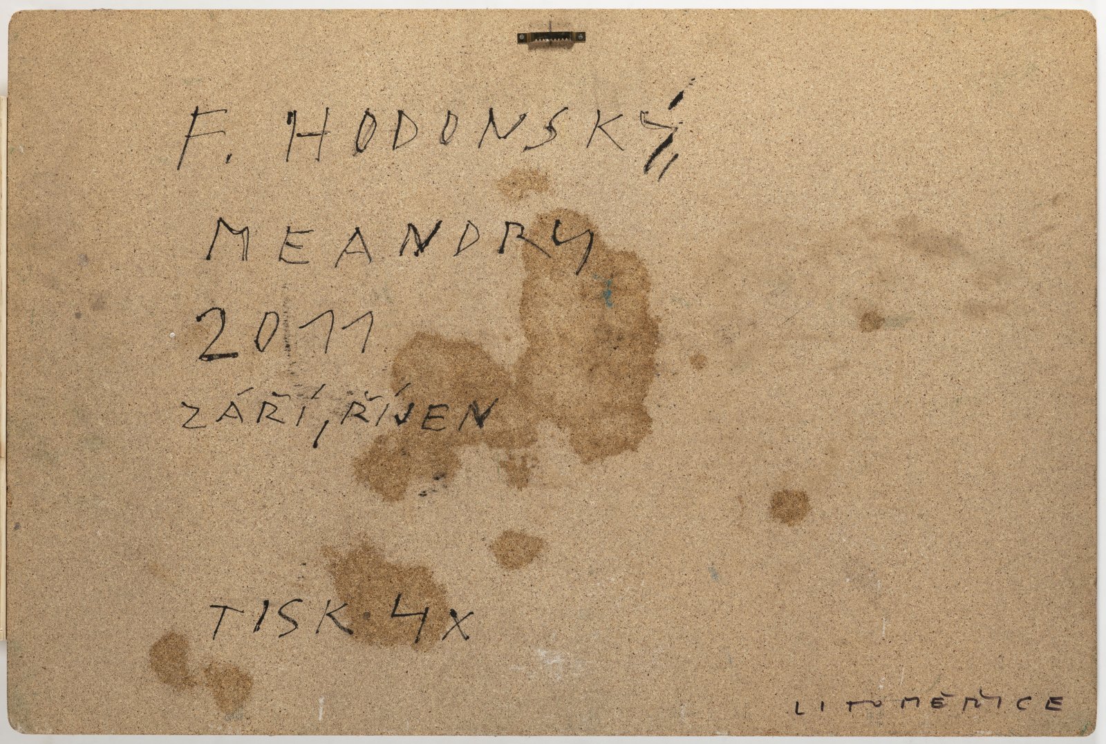 František Hodonský became famous for his original graphic art, in which he imprinted his own imagination onto the landscape and worked with abstract surfaces. Hodonský experimented extensively with woodcuts, printing small series of only a few pieces. His innovative approach earned him the Vladimír Boudník Award. The presented matrix was printed a total of four times (author's inscription on the reverse).