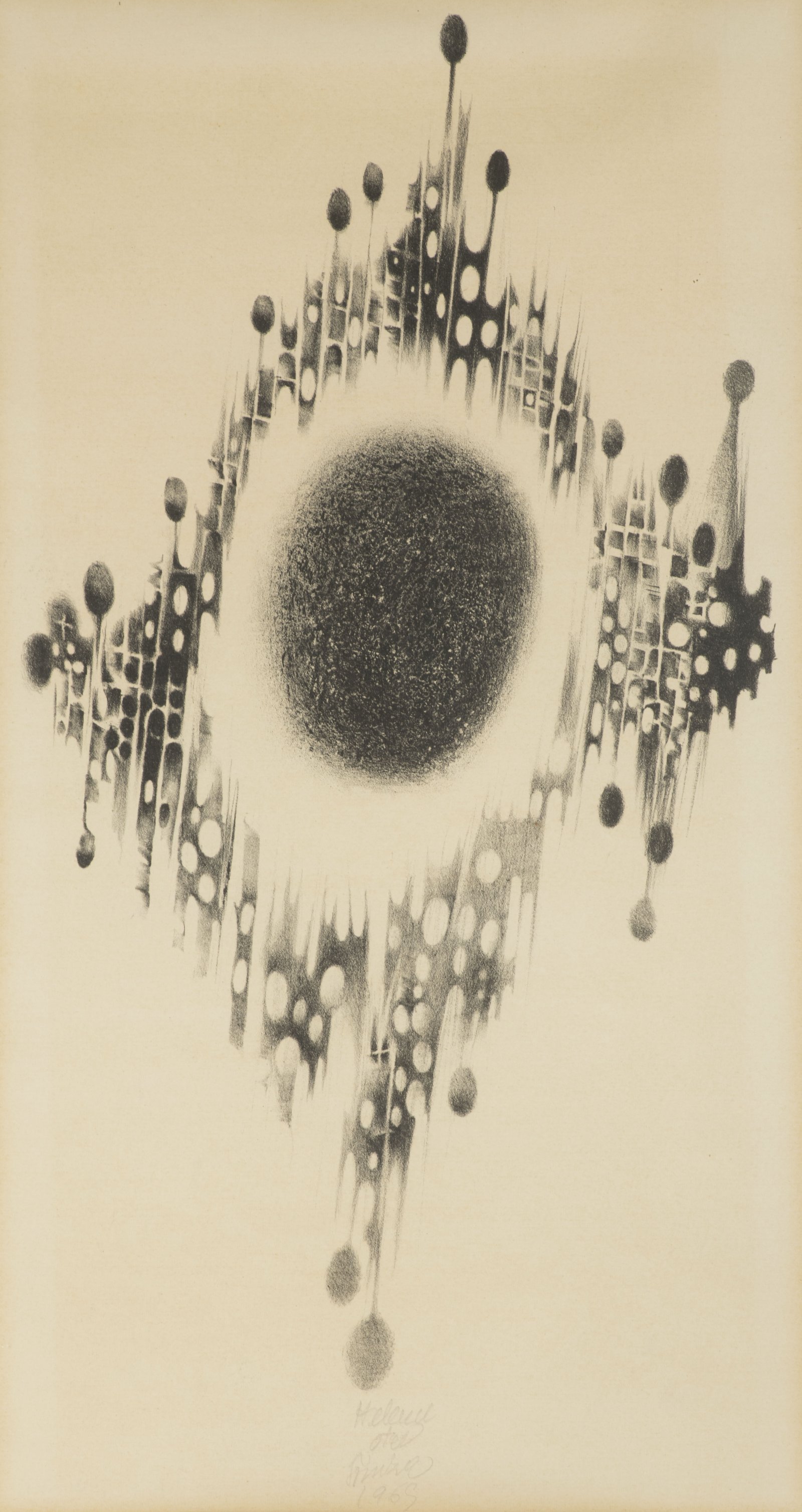 The abstract graphics of Mirrors represent a lesser-known aspect of Jiří Trnka's work. The fairy-tale motif of mirrors is rendered with delicate velvety shading. From the estate of Jiří Trnka's daughter, Helena Trösterová, née Trnková.