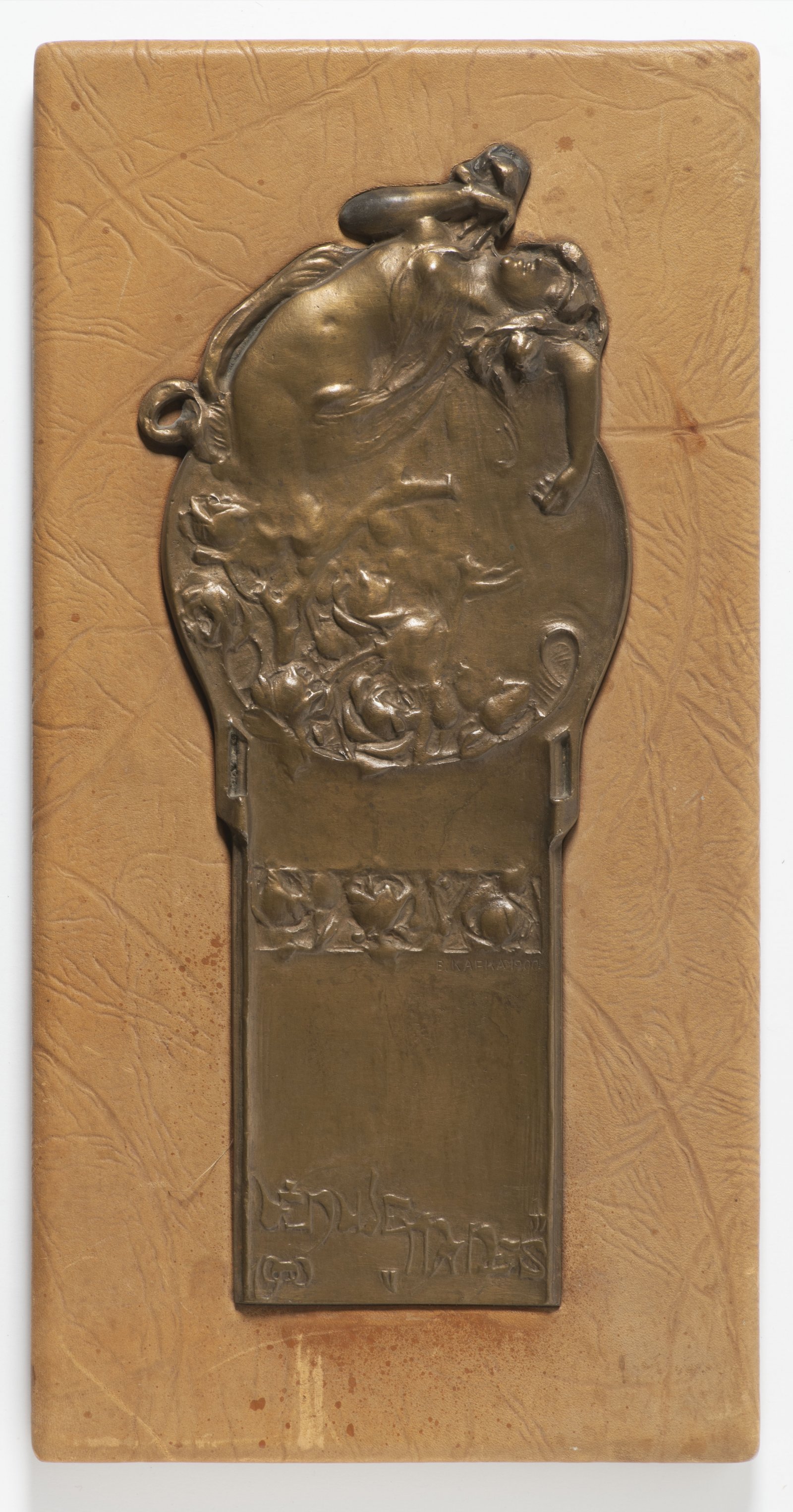 Before Kafka traveled to Paris, where he drew inspiration from the modernist tendencies of A. Rodin and A. Bourdelle, he created a number of sculptures in the Art Nouveau style. The plaque on offer, featuring a woman surrounded by roses, corresponds in its composition and ornamentation to the Art Nouveau style of Alfons Mucha. Text below: dedicated by Mánes / 1900. Published in: Kafka, Bohumil and Wittlich, Petr. Bohumil Kafka: (1878-1942): the story of a sculptor. Prague: Karolinum, 2014, p. 18.