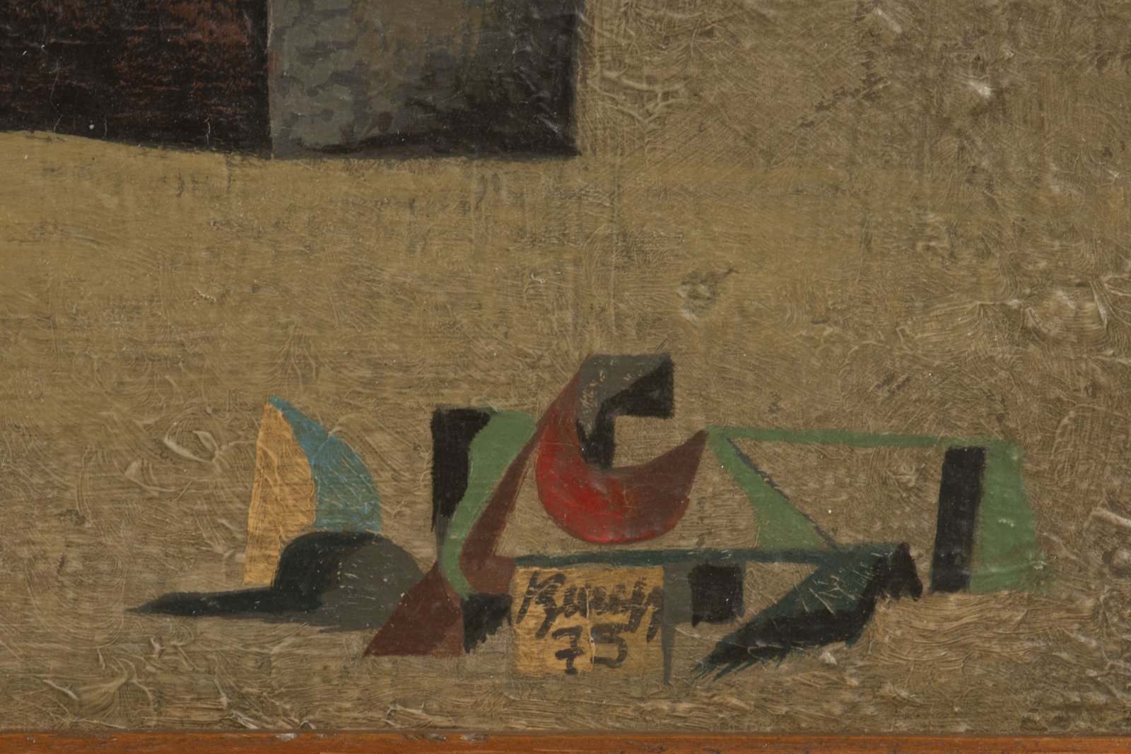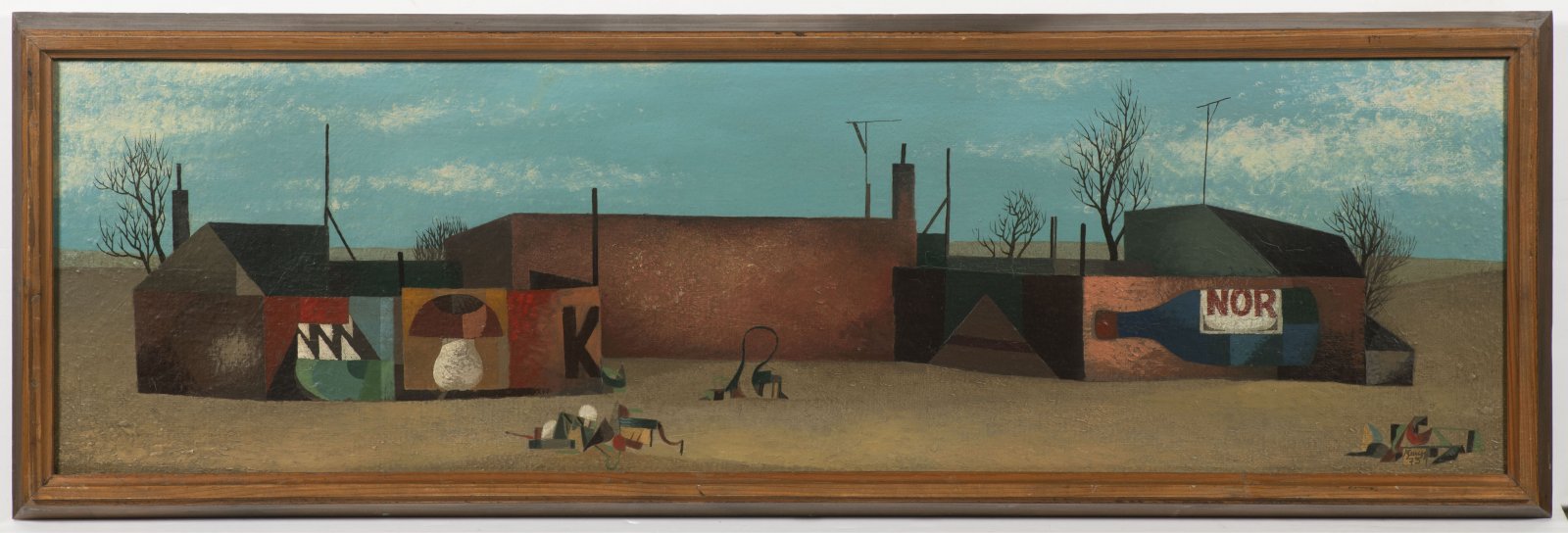Vlastimil Beneš was a member of the Máj 57 group and was also influenced by folk art. He recorded a wide range of civilian motifs, including the industrial landscape presented here. He was very fond of compositions with a long horizontal line and used them to accentuate the geometry of the city. He managed to imbue the city with an unusual lively poetry, optimism, and a certain exaggeration, which he achieved through simple modeling and the frequent use of advertising graphics in his urban compositions.