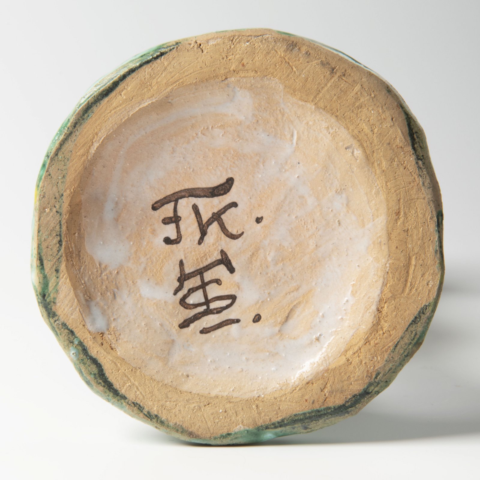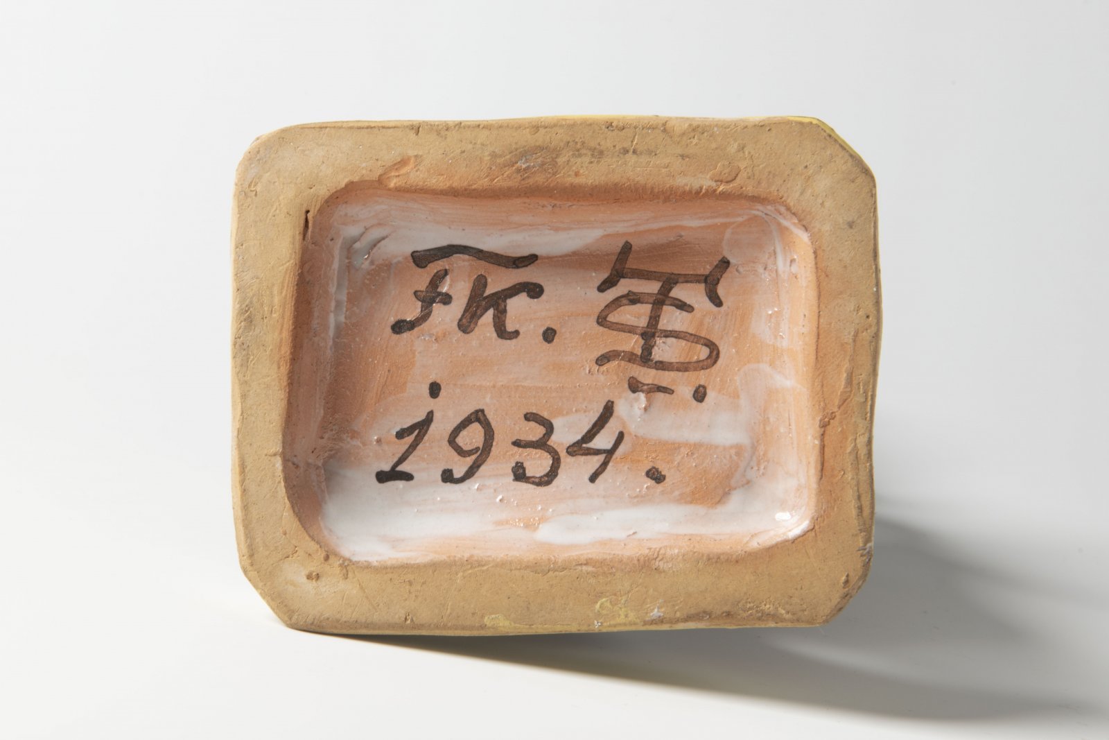 The figures of a farmer with a scythe and a musician are the work of Ferdiš Kostka, a prominent representative of Stupava ceramics. Excellent condition.