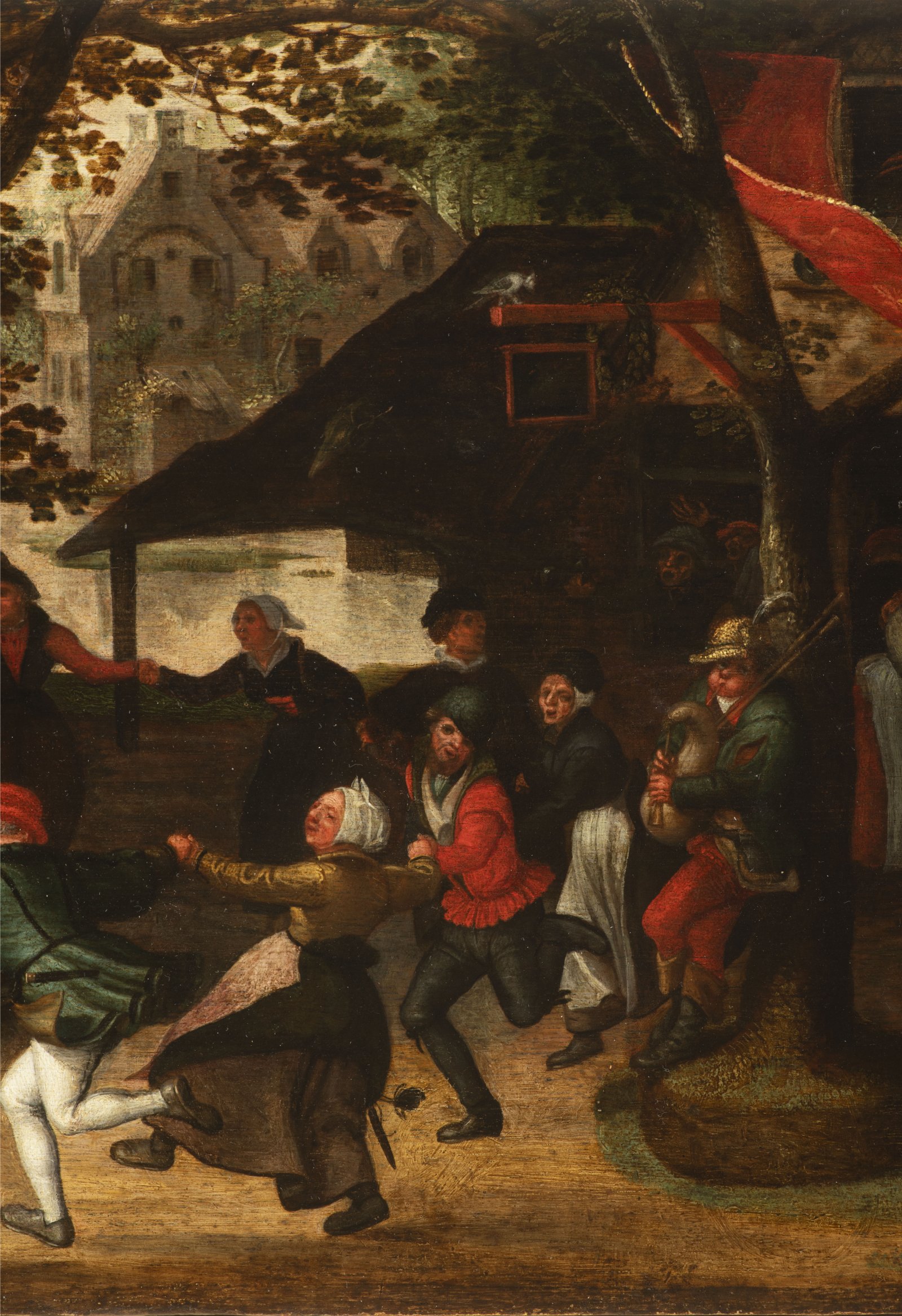Village Dance is a beautiful, lively genre painting with a rural theme. The subject matter in Dutch and Flemish painting varies according to the specific circumstances – Pieter Brueghel the Younger painted a very similar composition, Dance Around the Maypole, and also depicted village wedding dances and even brawls. In addition to the obvious merriment, similar paintings also have a moralistic side, which draws attention to human failings and encourages moderation.