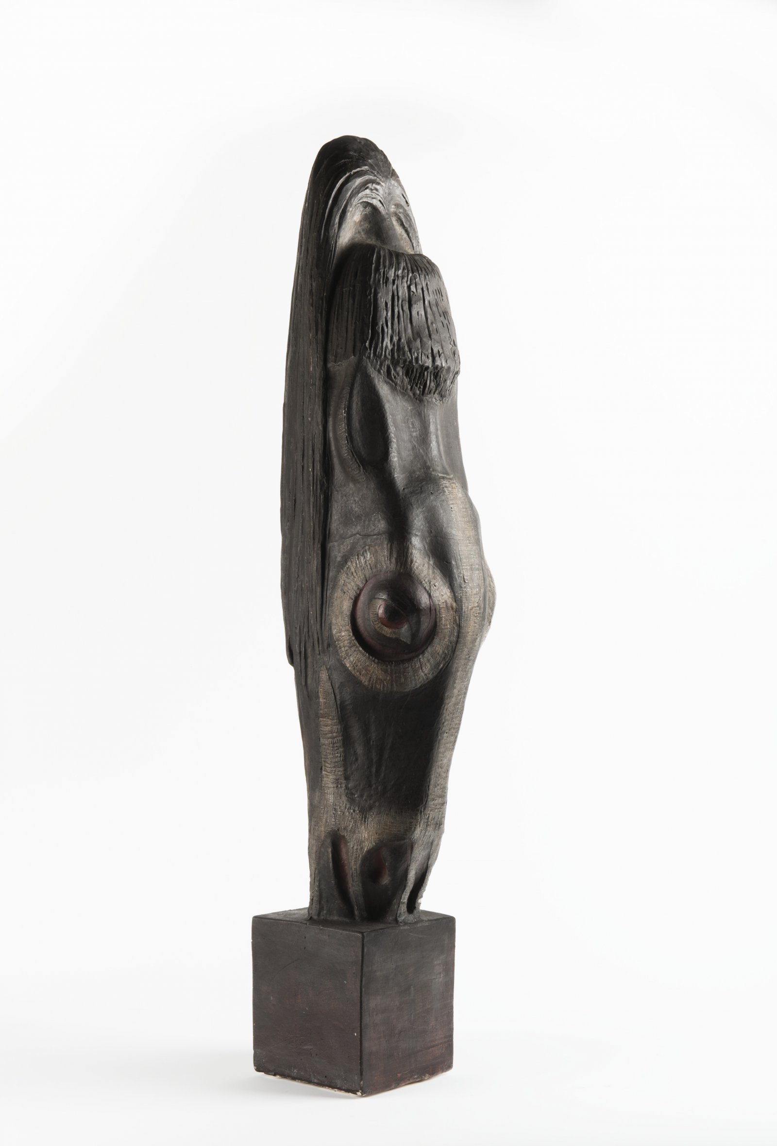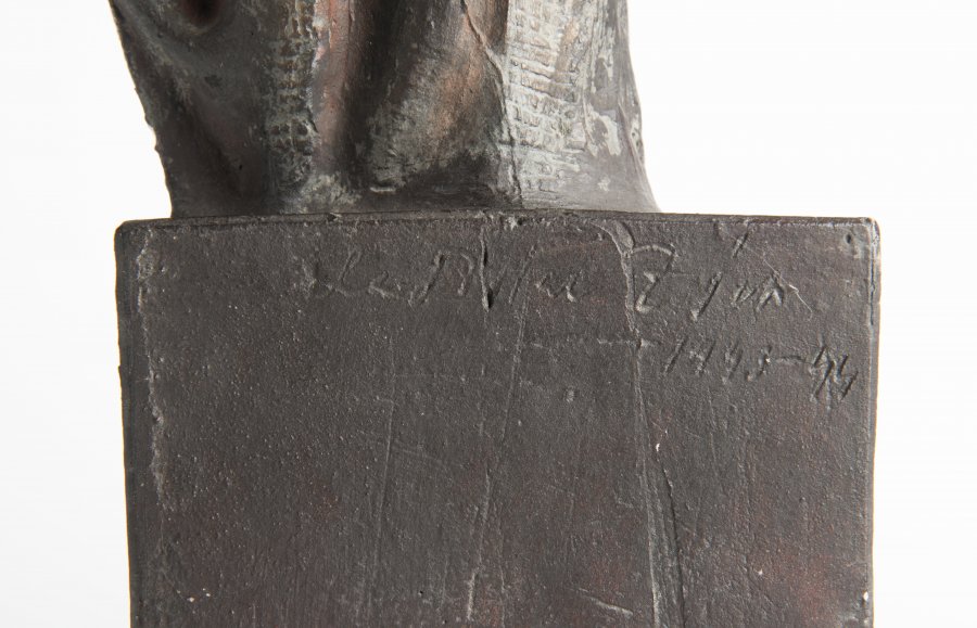 Eine einzigartige frühe Skulptur von Ladislav Zívr, über die Vladimír Preclík in seinem Buch "Smírčí kříže" schrieb: "Erst als ich sie eine Woche bei mir zu Hause hatte, verstand ich die Ungewöhnlichkeit von Zívrs Werk. In ihr ist nicht nur die Traurigkeit der trauernden Familie, sondern des ganzen Dorfes, ja der Nation. Der Kopf des Tieres verschmilzt mit der schwarzen Mähne; die markanten Augen sind mit silbernen Kreisen umrahmt, zusammen mit dem Zaumzeug zum lenken des Pferdes. Der Kopf ist anmutig schmal, die Augen sind blutunterlaufen. Es handelt sich um eine Skulptur, die länger und komplexer betrachtet werden kann, als man es gewohnt ist. Heutzutage betrachten wir Kunstwerke gewöhnlich schlampig und schnell - so wurden es uns beigebracht, und die Uhren sagen uns die Zeit, obwohl sie schneller voranschreitet als die schwarzen Schuhe eines Musiker, der die doppelte Zeit hält". Ausgestellt in: Ladislav Zívr 1909-1980, Nationalgalerie in Prag 2007. Erschienen in der Monografie des Künstlers: Ladislav Zívr, Jaromír Typlt, Kant, 2013, Nr. 85 im Werkverzeichnis.
