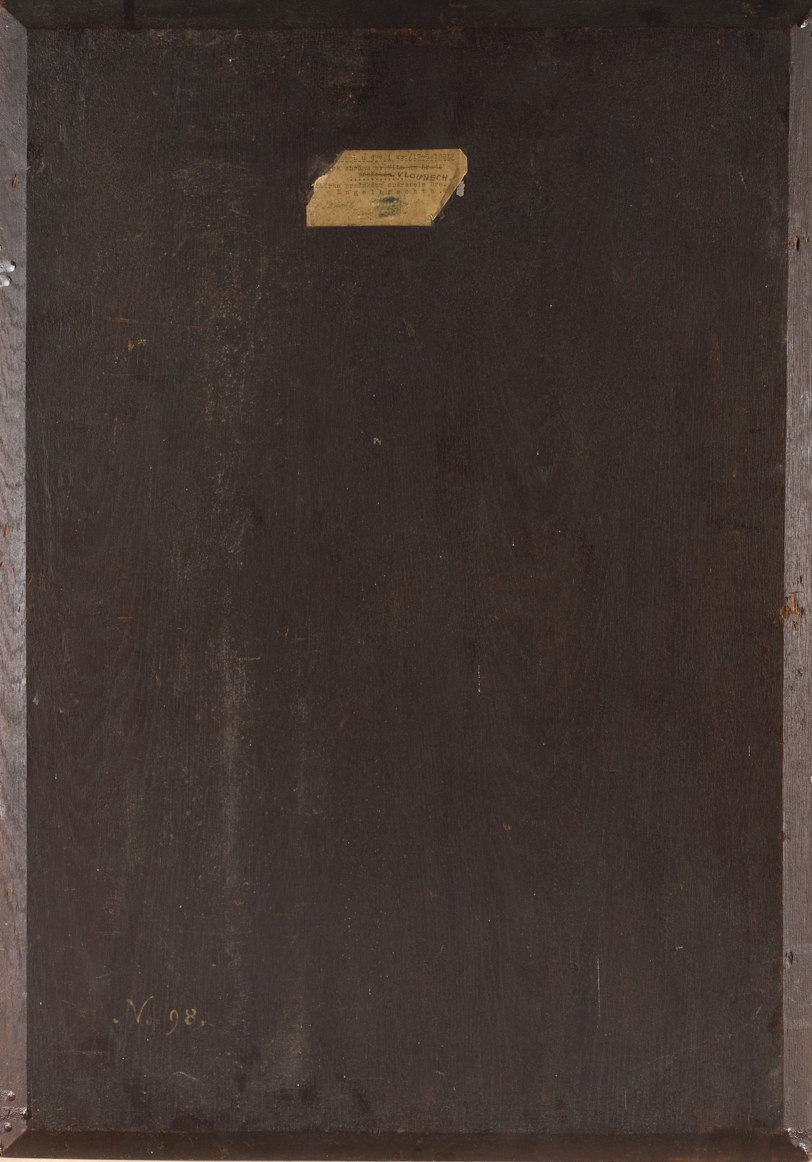Oil on wood panel, signed K on bottom left. Probably the interior of St Nicholas Church in Louny. Work from the noted collection of a Prague collector, Dr Engelbrecht. Assessment: PhDr. Naděžda Blažíčková-Horová.