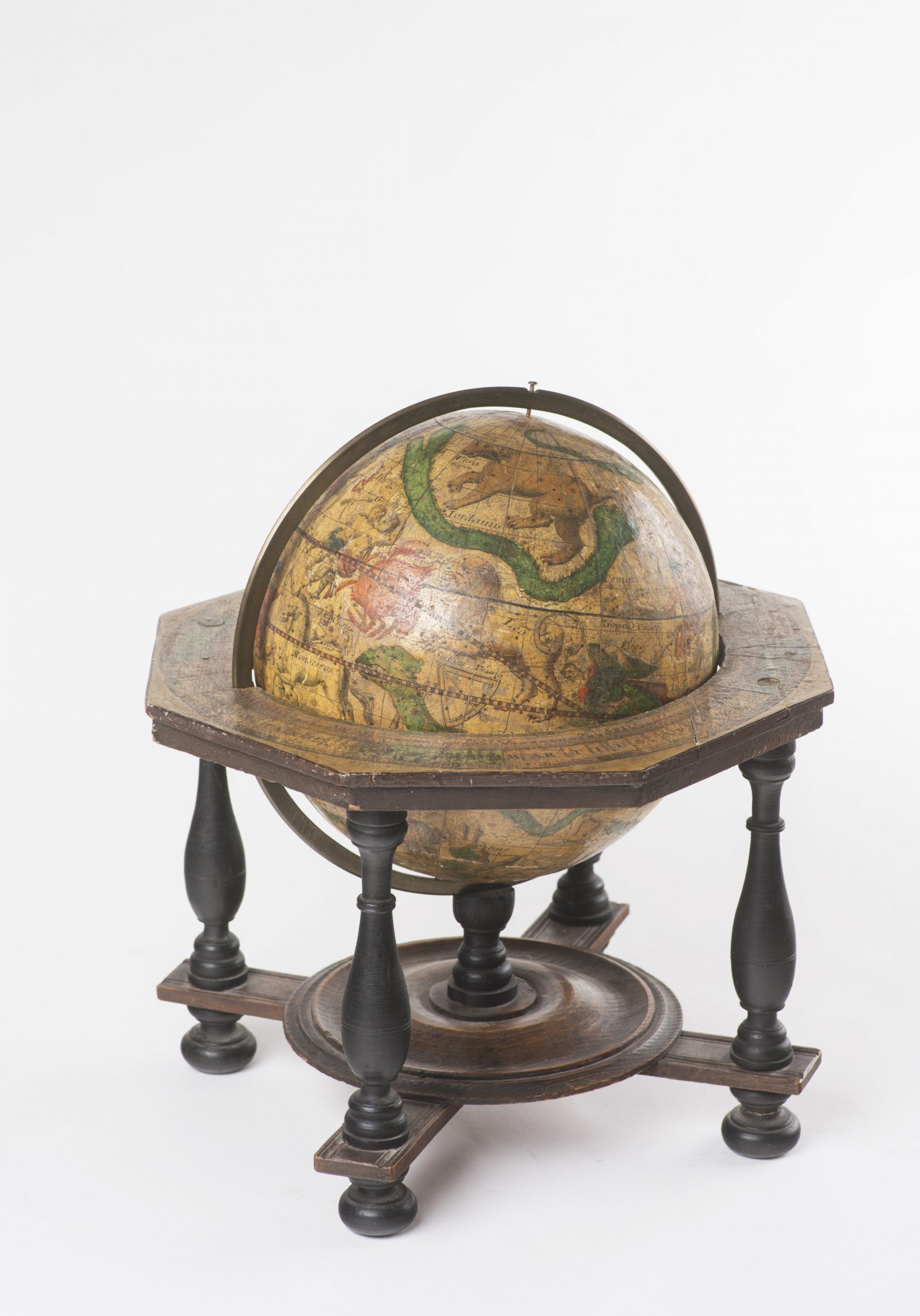 A tabletop celestial globe by the prominent German cartographer, engraver and publisher Matthäus Seutter (1678-1757) of Augsburg, who was considered one of the most important and prolific cartographers of his time. For his service, Charles VI granted him the title of "Imperial Geographer" in 1732. Lined paper glued to a plaster base. Wooden mounts - oak, brass axis. Marked on the cartouche.