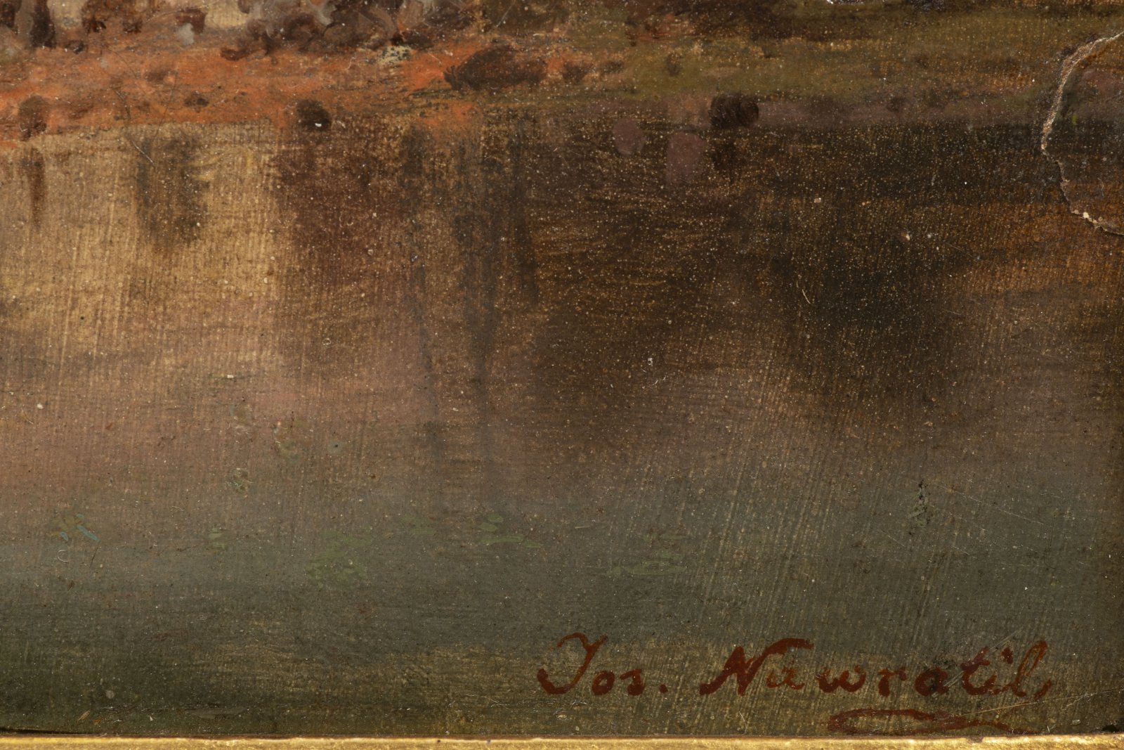 From the assessment by PhDr. Naděžda Blažíčková-Horová: "The oil painting presented here is undoubtedly a beautiful work by the painter Josef Navrátil, most likely from after 1850. At that time, Navrátil's work was dominated by oil paintings of landscapes, in keeping with the modern romanticism of the period. Navrátil exclusively sketched and painted the final works in his studio. He combined elements of real landscapes into an artificial, idealized, yet lively, impressive, and convincing natural backdrop. The scene shows a high degree of observation and immense sensitivity to natural phenomena and the play of light in the atmosphere."