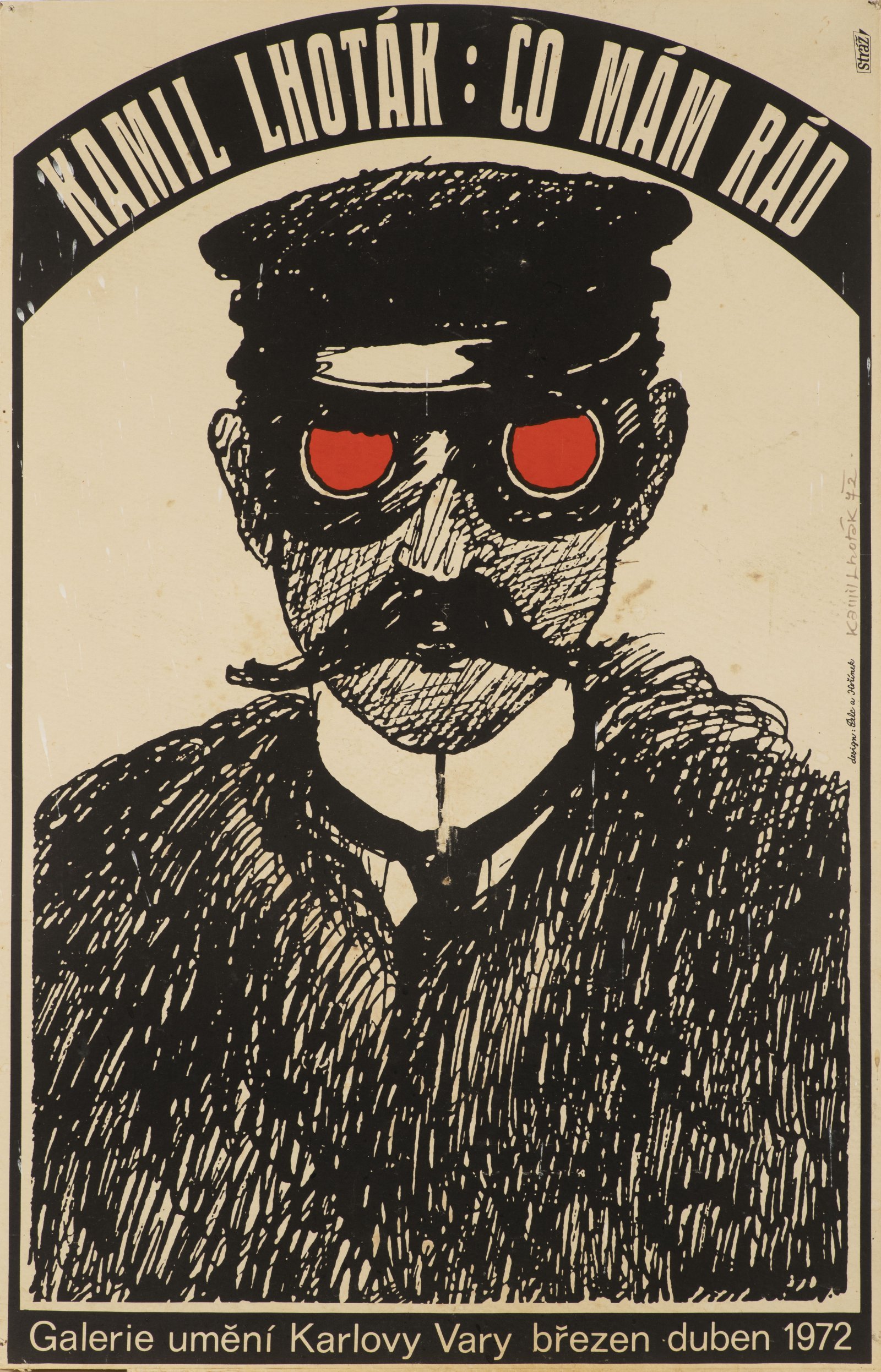 Poster for the traveling exhibition: Kamil Lhoták: What I Like. Paintings from 1930-1970, which visited Liberec, Litoměřice, Louny, and Karlovy Vary. Equivalent print registered by the Moravian Gallery under inventory number: GD 17908.
