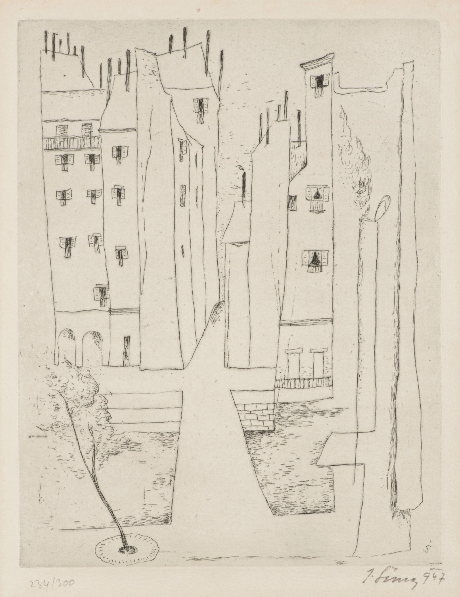 The veduta depicting Parisian houses is a typical and artistically refined work by Josef Šíma. The simple, subtle lines are masterful, almost calligraphic, and sophisticated in their simplicity. At the age of thirty, Josef Šíma settled permanently in France, but maintained lively contacts with the Czech environment.