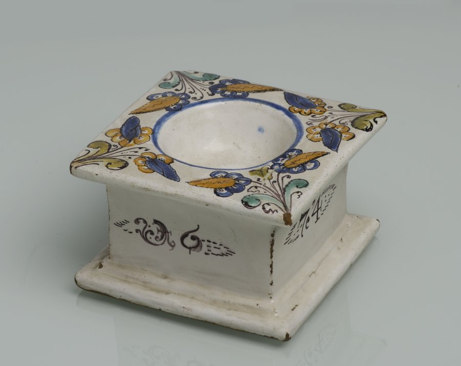 Habán pottery in typical colors, dated 1674.