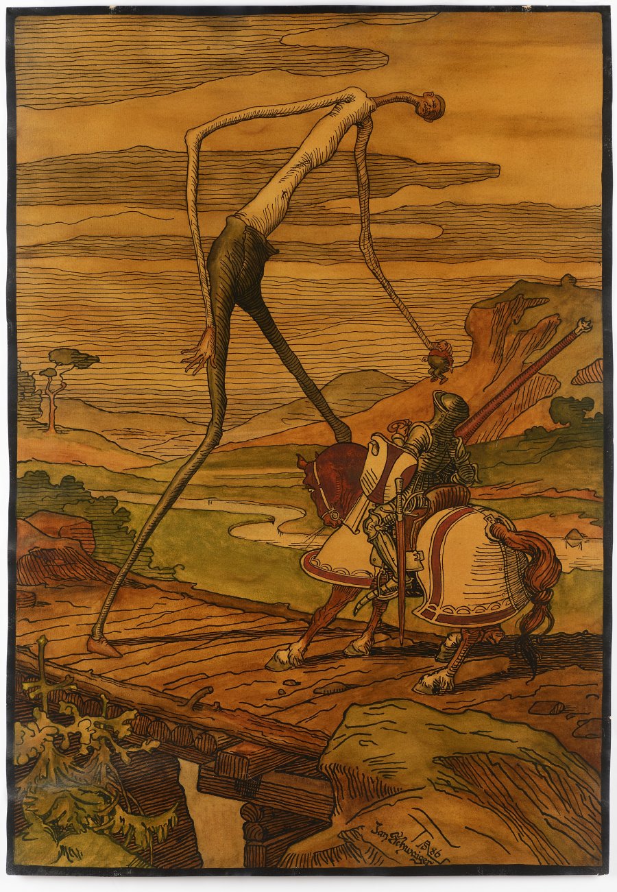 Watercolor on paper, lacquered. Signed "J. Schwaiger 86" on bottom center.