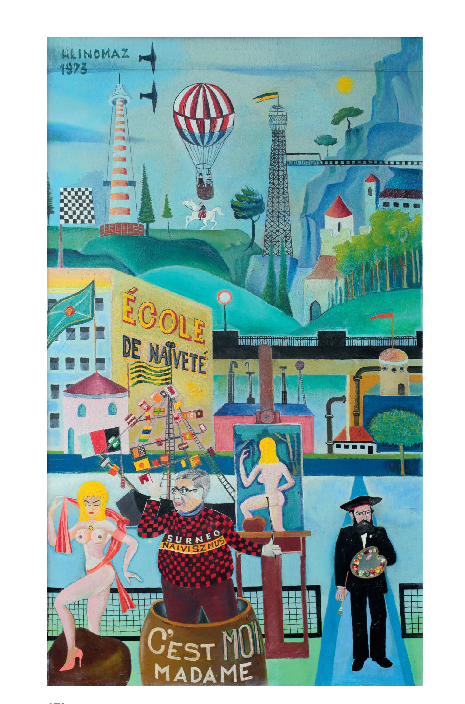 The artist, although known as an actor in comedies, was very versatile. He created his own painting style, which he called "surneonaïvism." He painted comic scenes, magical landscapes and still lifes. This painting was created on a direct commission from the seller, as the artist was his friend. The assignment was: "Paint me the most beautiful painting you can." Hence the title of the work. Oil on panel, signed and dated on top left "Hlinomaz 1973".