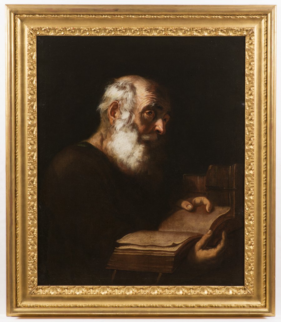 This High Baroque work by an Austrian painter, portraying the half-figure of St. Peter, is an example of superb chiaroscuro painting. Halbax was able to study the Italian masters directly in Venice, and their influence is more than evident. During his time in Bohemia, particularly in 1700–1709, he strongly influenced Czech Baroque painting. Oil on canvas, signed "Halbax" on bottom right.